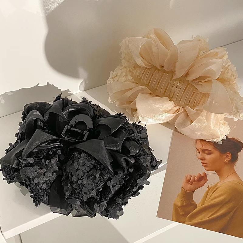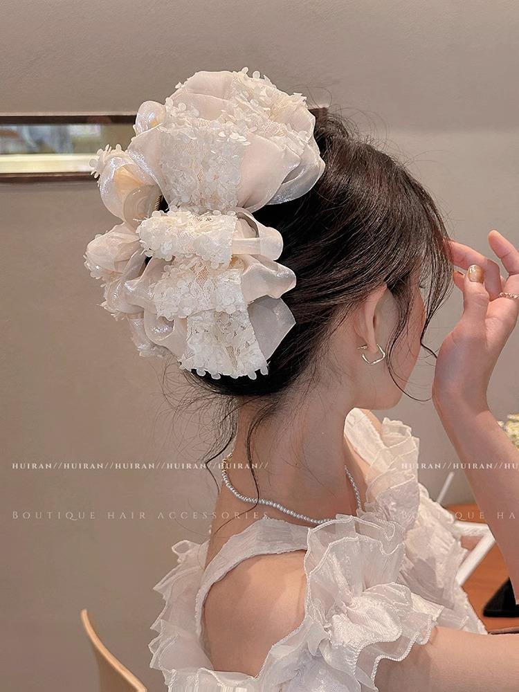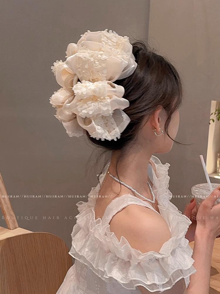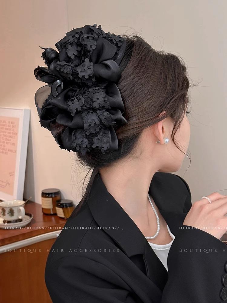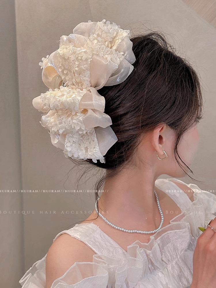고급 꽃무늬 대형 다층 보우 헤어 클립 여성용 머리 뒷면 얼굴 작은 접시 헤어 클립 상어 클립 모자스토어 가기