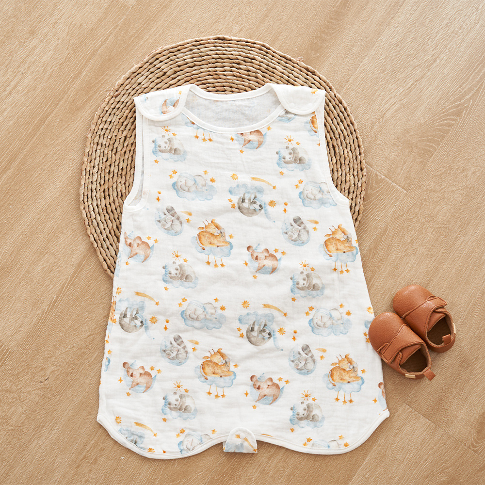 캉고베이비 아기 민소매 순면 거즈 수면조끼 여름 얇은 어린이 에어컨 방 조끼 아기 발차기 방지