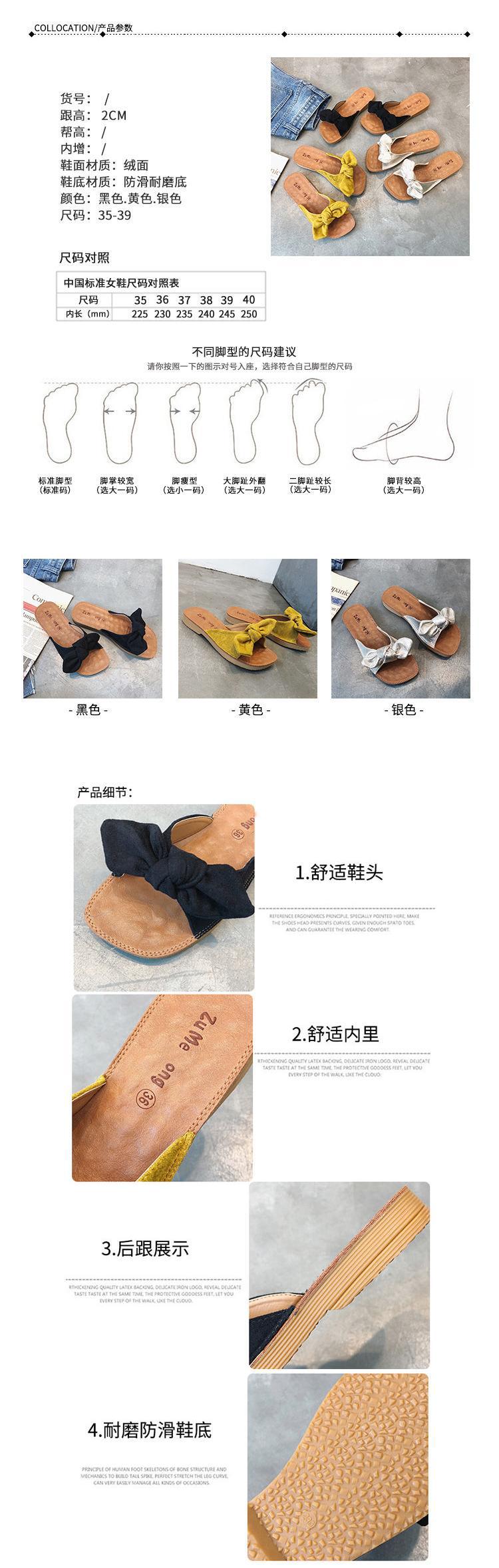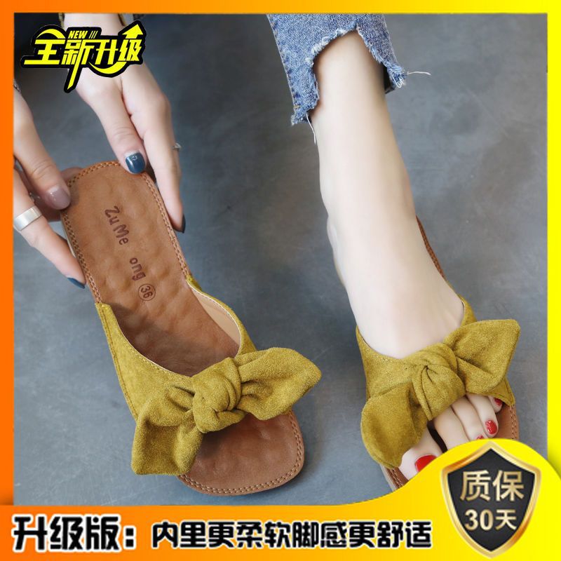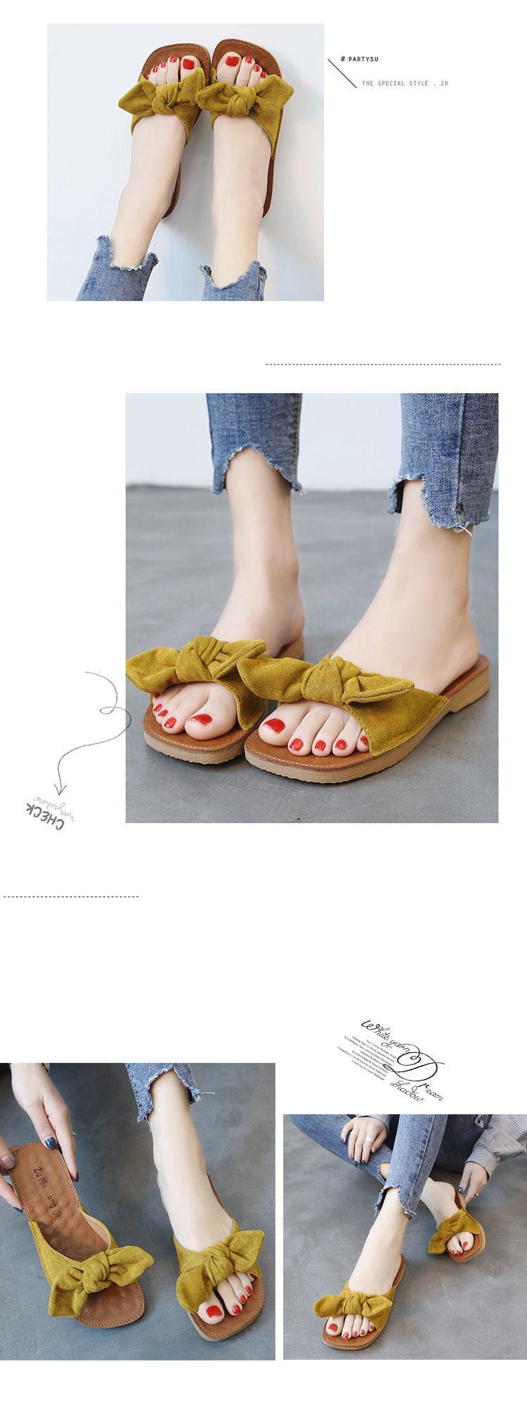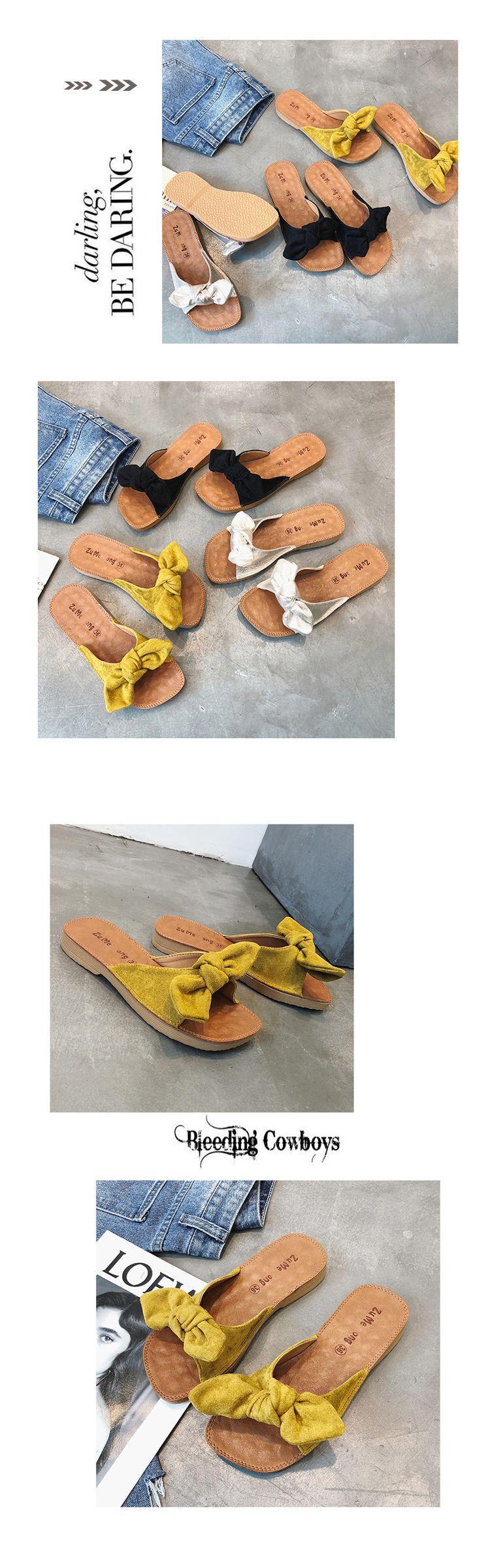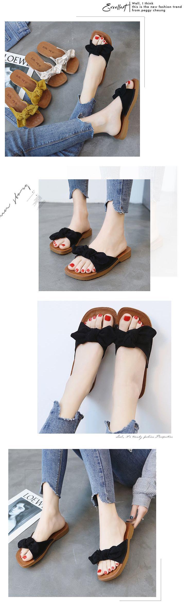 여름 2023 새로운 두꺼운 슬리퍼 플랫 보우 슬라이드 달콤한 모든 매치 편안한 비치 슈즈 여성 신발스토어 가기