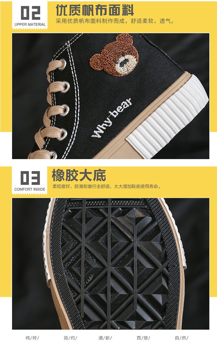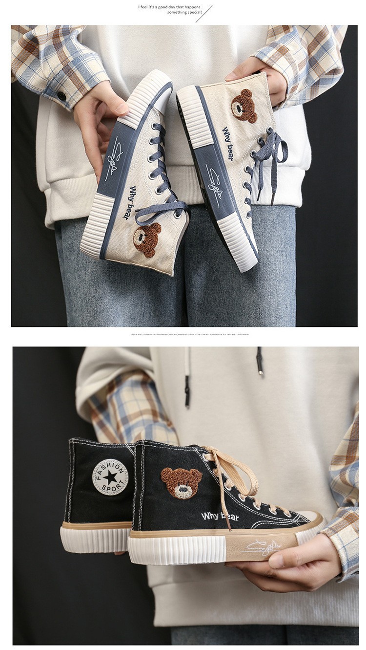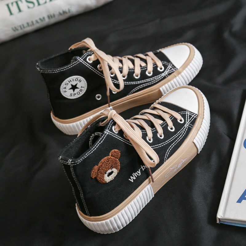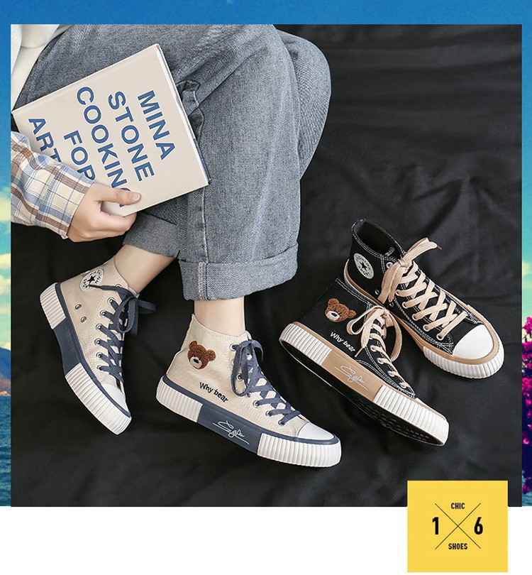 봄 2023 새로운 한국 스타일 베어 하이탑 캔버스 신발 여성 학생 캐주얼 신발 가황 신발 단층 신발 여성용 흰색 신발스토어 가기