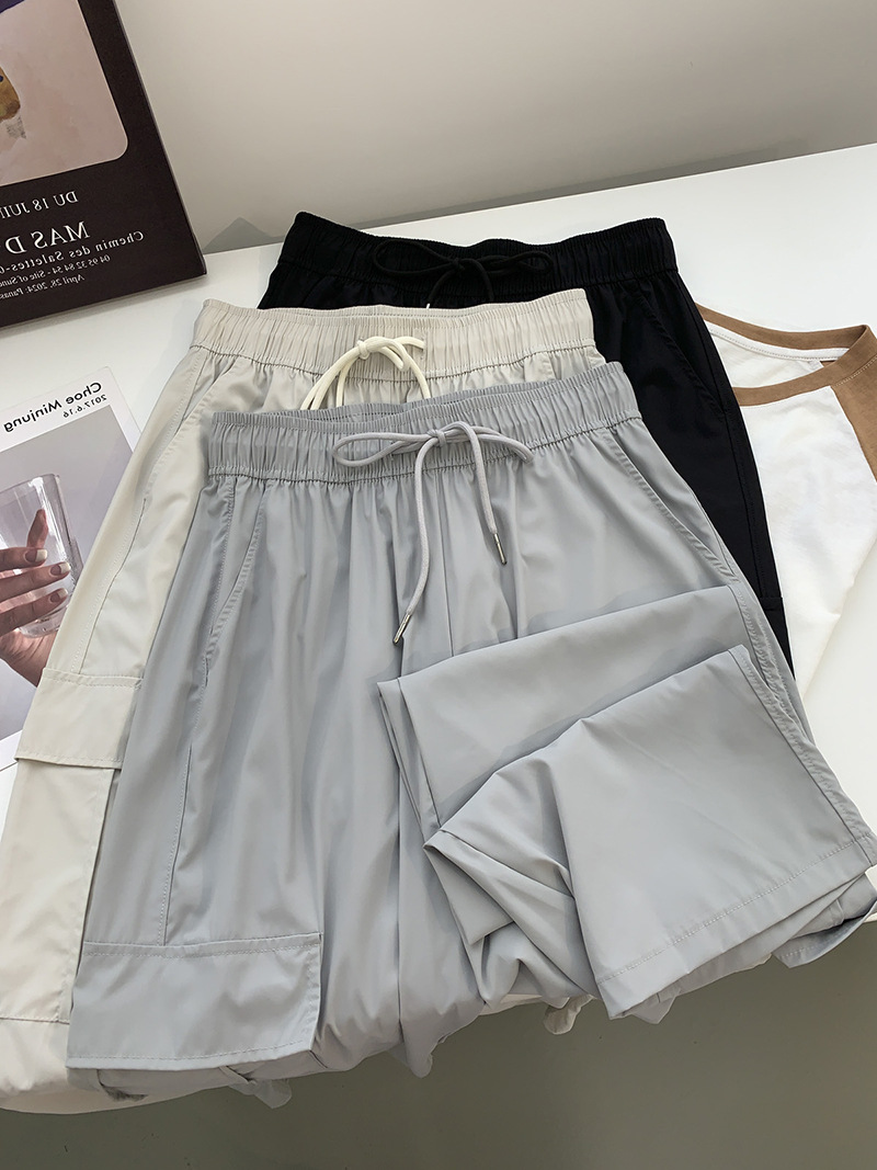 통기성 자외선 차단제 카고 바지 여성용 여름 얇은 느슨한 등산 캠핑 스포츠 졸라매는 끈 스트레이트 캐주얼 바지 New