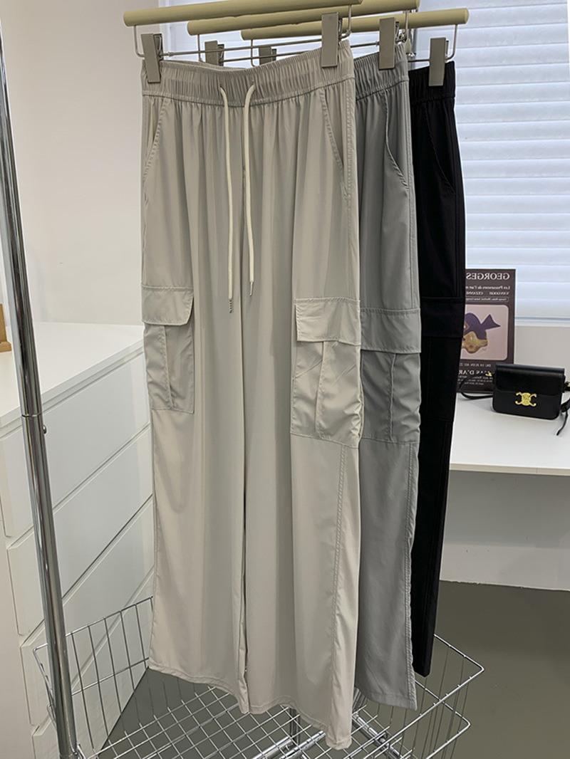 통기성 자외선 차단제 카고 바지 여성용 여름 얇은 느슨한 등산 캠핑 스포츠 졸라매는 끈 스트레이트 캐주얼 바지 New스토어 가기