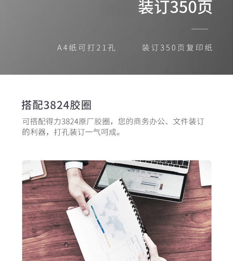 델리 3870 빗 제본기 a3A4 문서 바우처 파일 계약 부드러운 고무 링 클립 스트립 수동 구멍 펀칭기