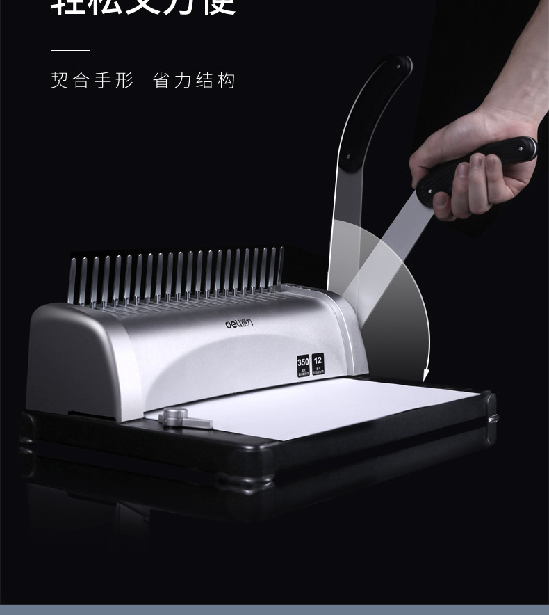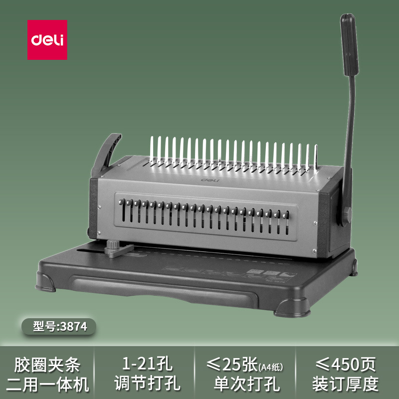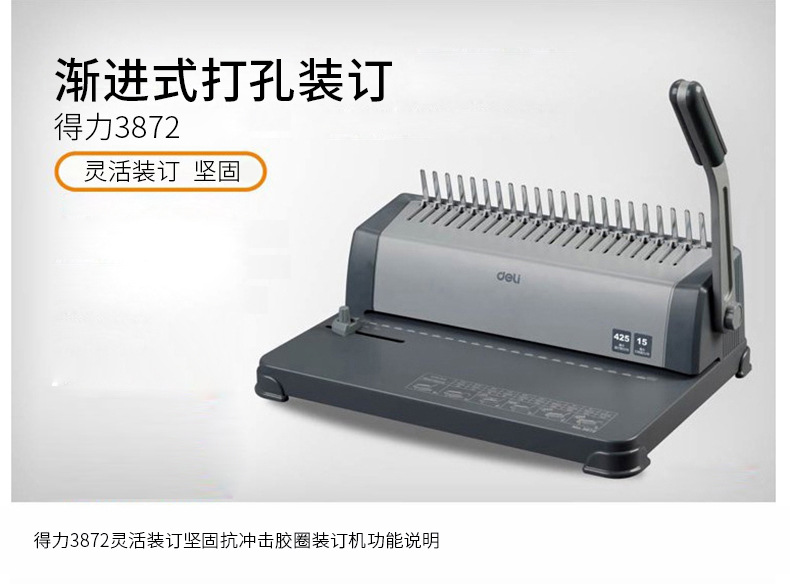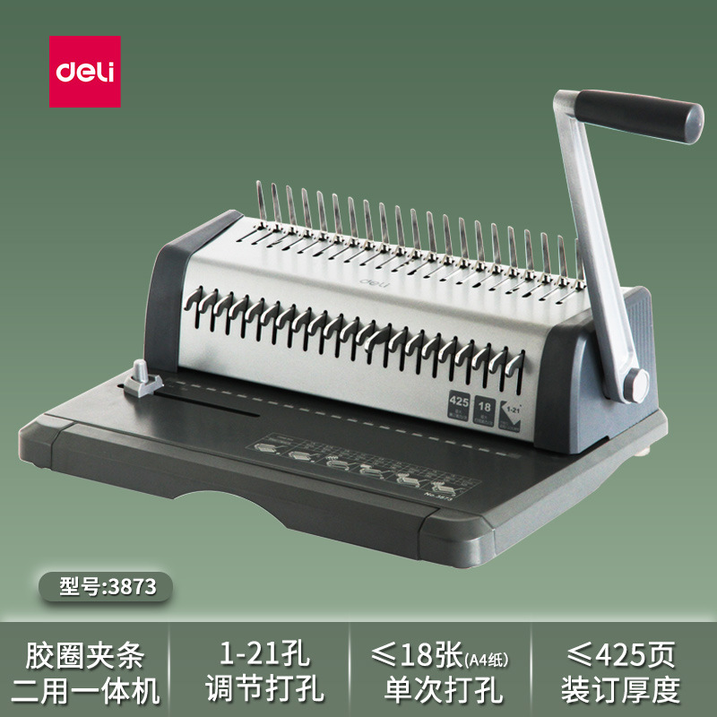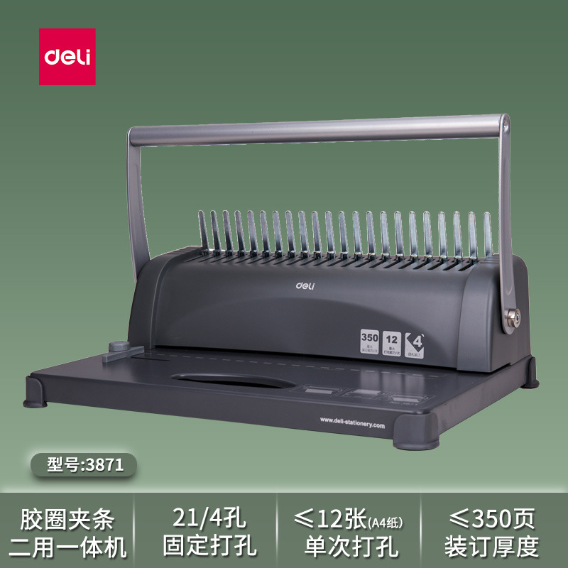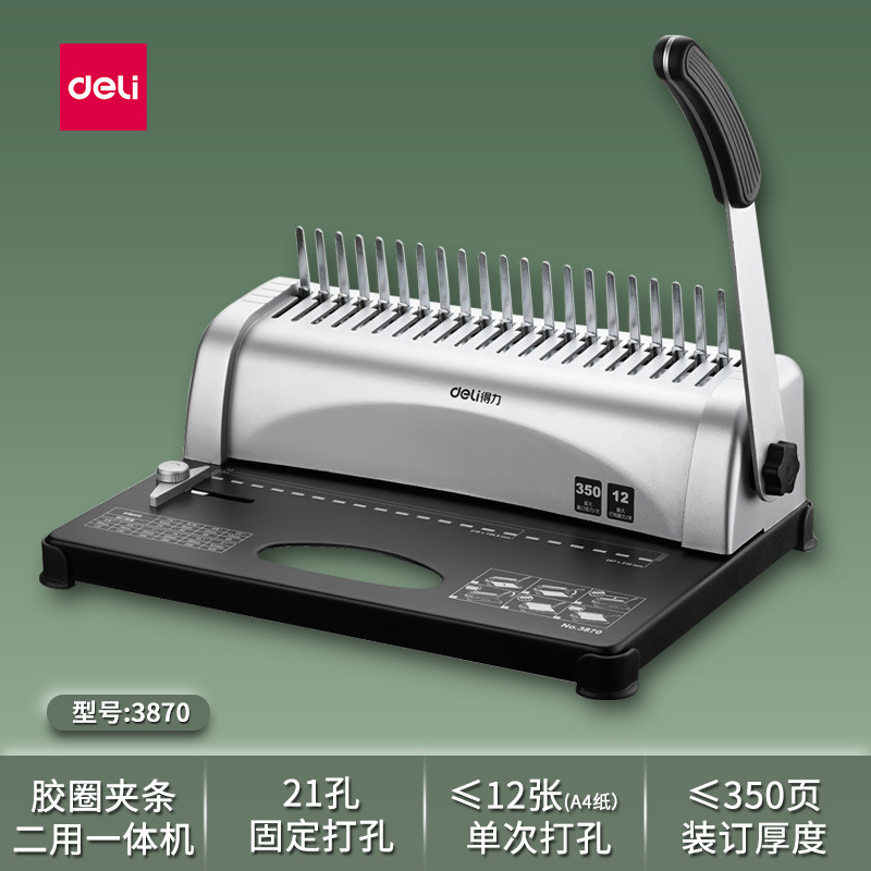 델리 3870 빗 제본기 a3A4 문서 바우처 파일 계약 부드러운 고무 링 클립 스트립 수동 구멍 펀칭기스토어 가기
