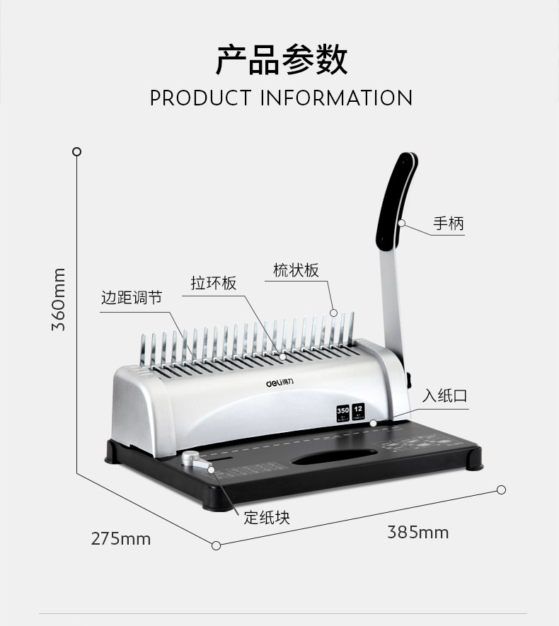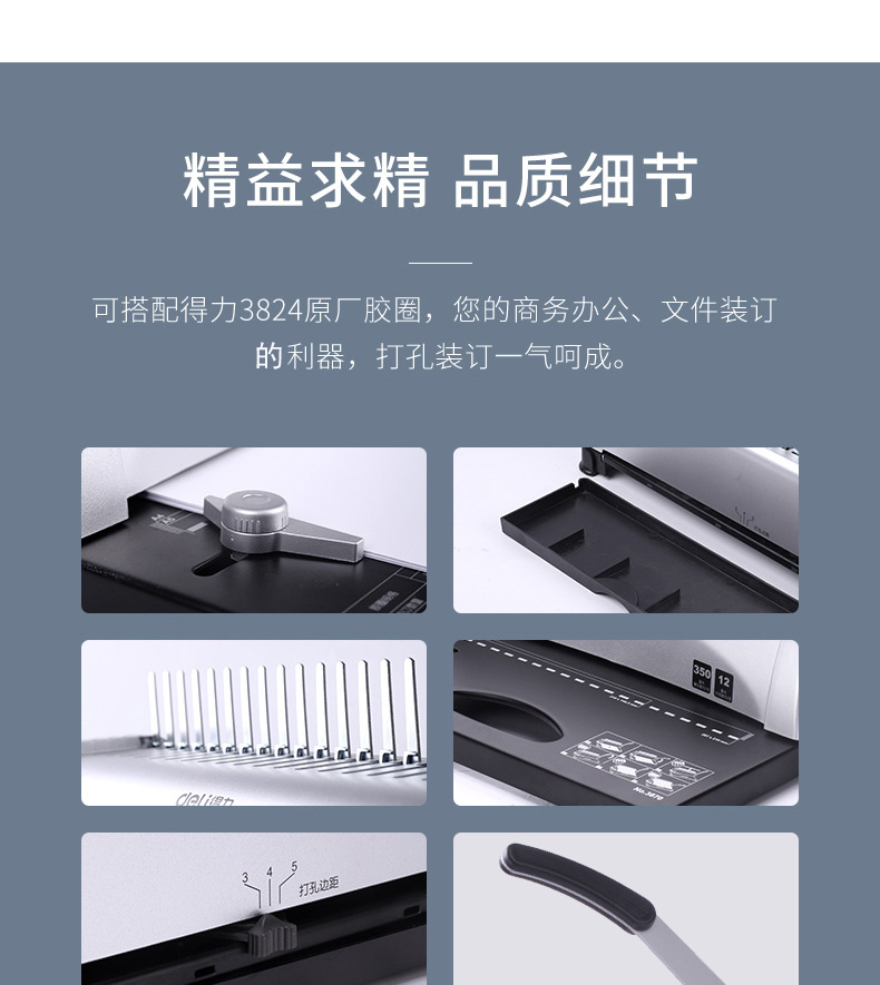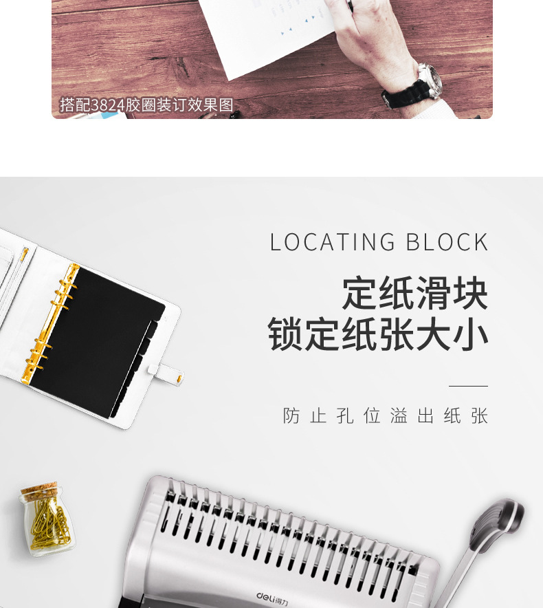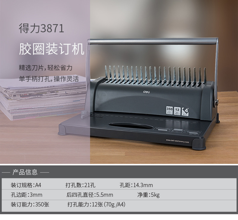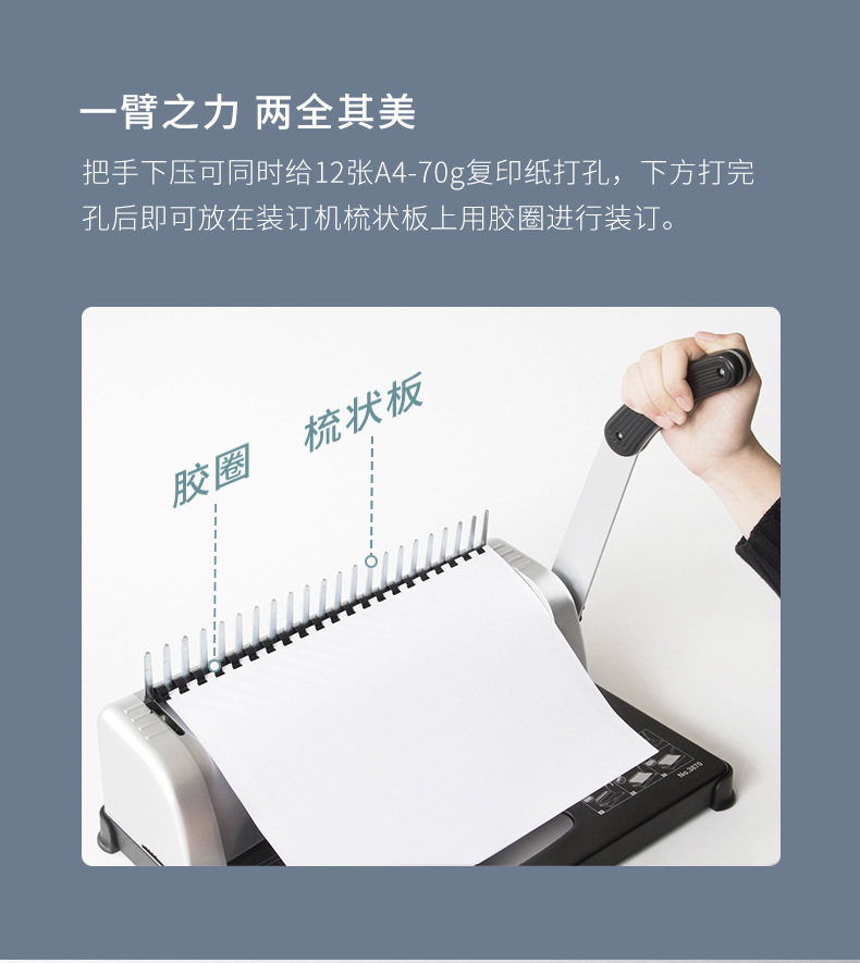 델리 3870 빗 제본기 a3A4 문서 바우처 파일 계약 부드러운 고무 링 클립 스트립 수동 구멍 펀칭기스토어 가기