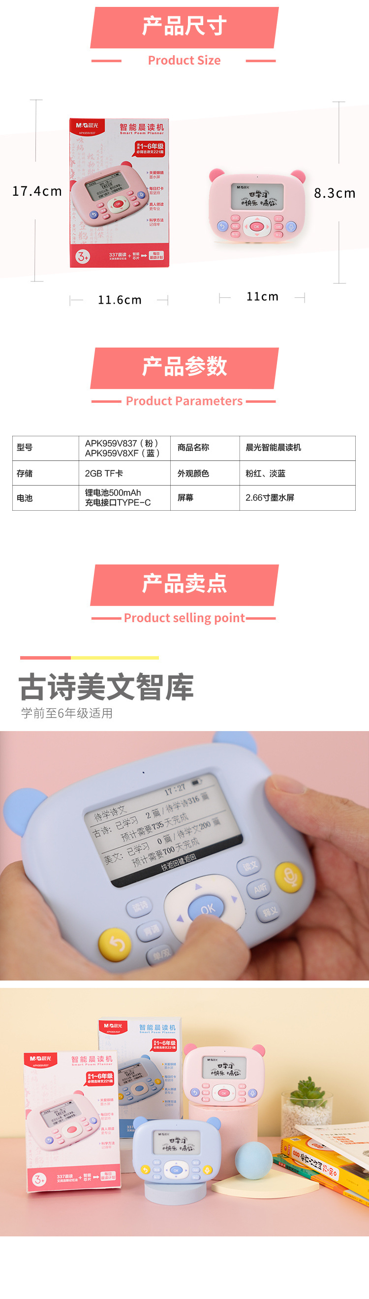 아침 빛 병음 기계 도매 APK959W3 어린이 초등 학생 학습 병음 기계 구술 계산 기계 아침 독서 기계 세트스토어 가기