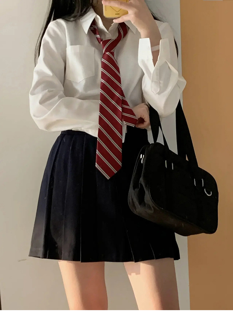 JK 유니폼 순수한 욕망 스타일 핫 걸 타이트 허리 긴팔 셔츠 여성용 일본 대학 스타일 학생용 모든 매치 반팔 흰색 셔츠스토어 가기