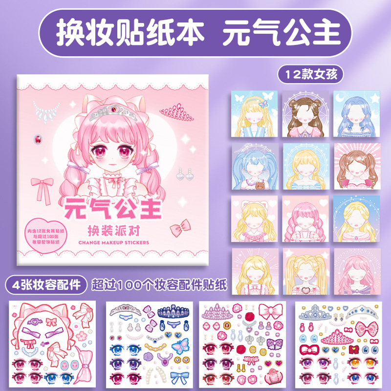 Kaba 곰 원피스 스티커 소녀의 장난감 아름다운 공주 메이크업 변경 스티커 만화 골동품 캐릭터 메이크업스토어 가기