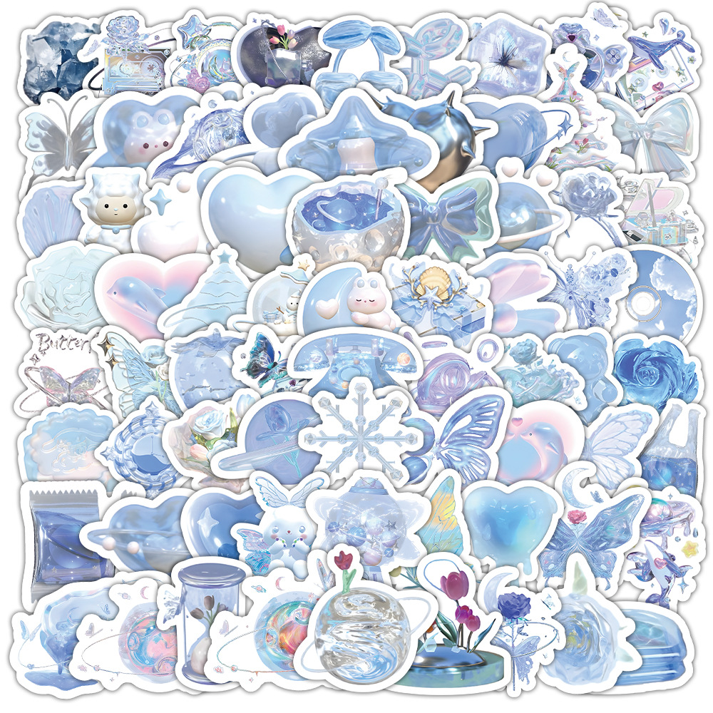 60 INS 바람 파란색 스티커 현실적인 작은 개체 핑크 보라색 노란색 녹색 작은 높은 색상 값 작은 스티커
