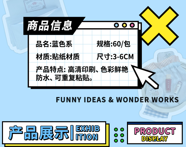 60 INS 바람 파란색 스티커 현실적인 작은 개체 핑크 보라색 노란색 녹색 작은 높은 색상 값 작은 스티커스토어 가기