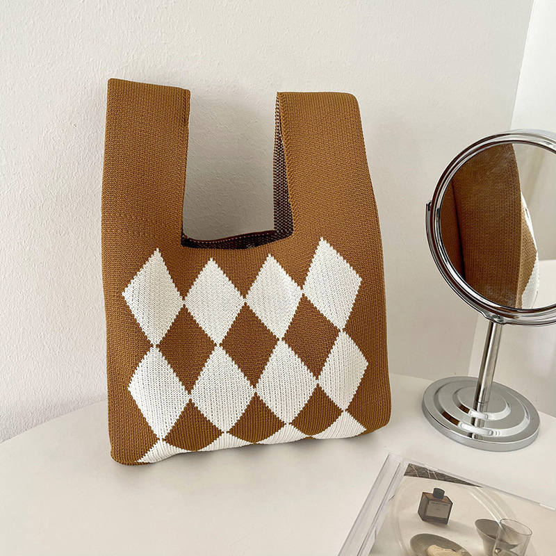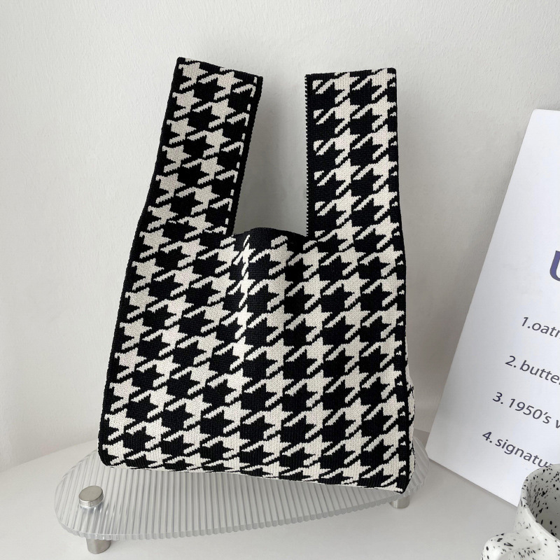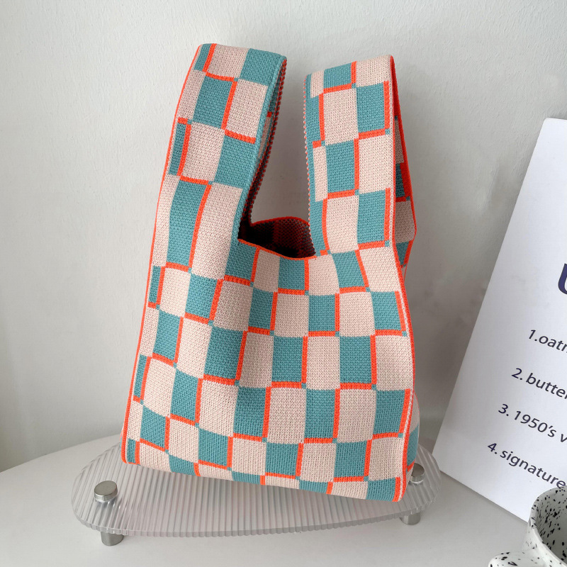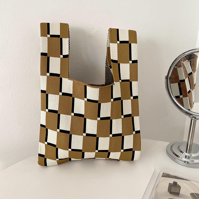 한국식 틈새 디자인 바둑판 만능 유행 여행 짠 핸드백 토트백 핸드백 대용량스토어 가기