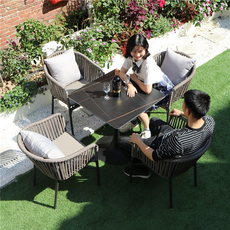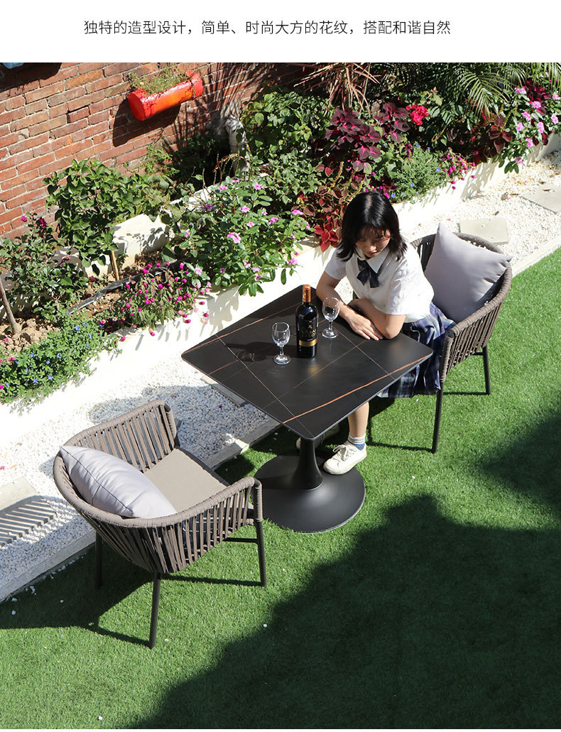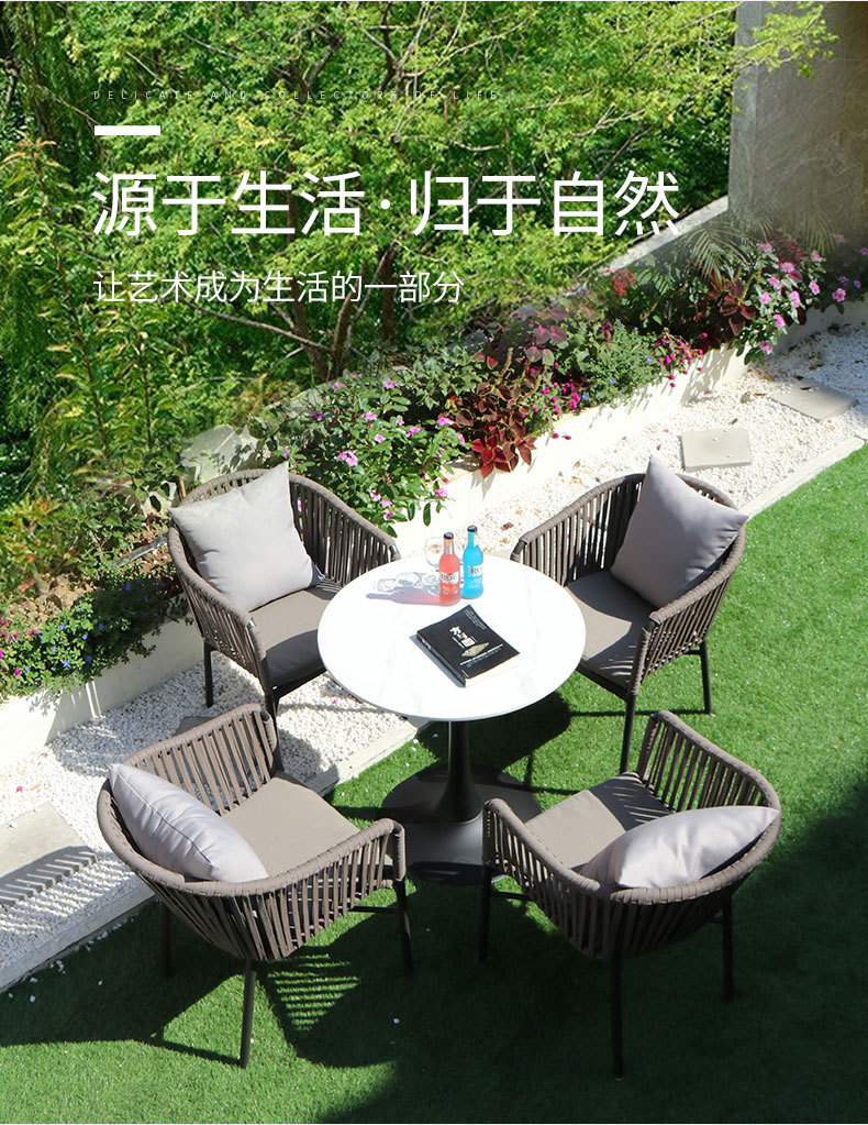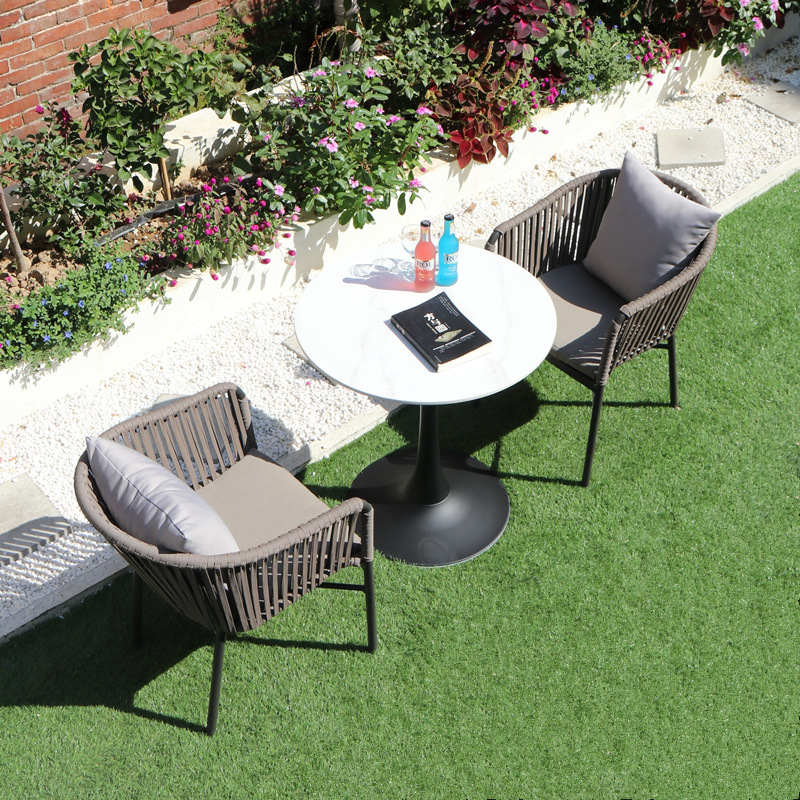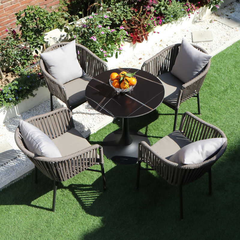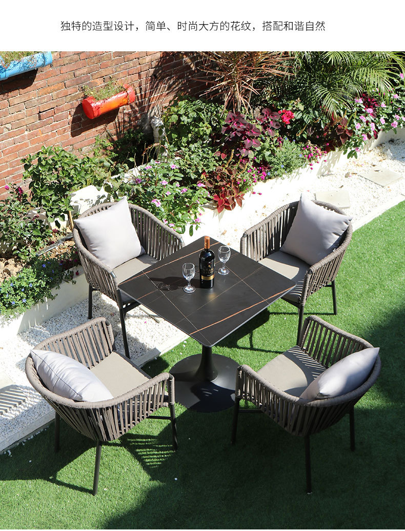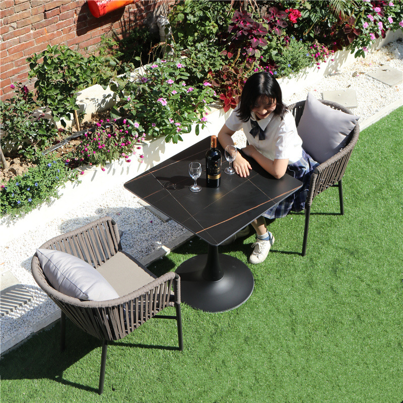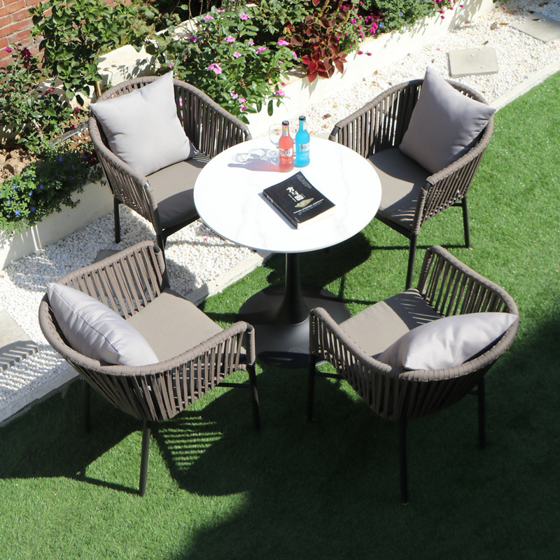 야외 등나무 테이블과 의자 조합 발코니 야외 안뜰 빌라 정원 레저 의자 로프 등나무 의자 바위 보드 식탁과 의자