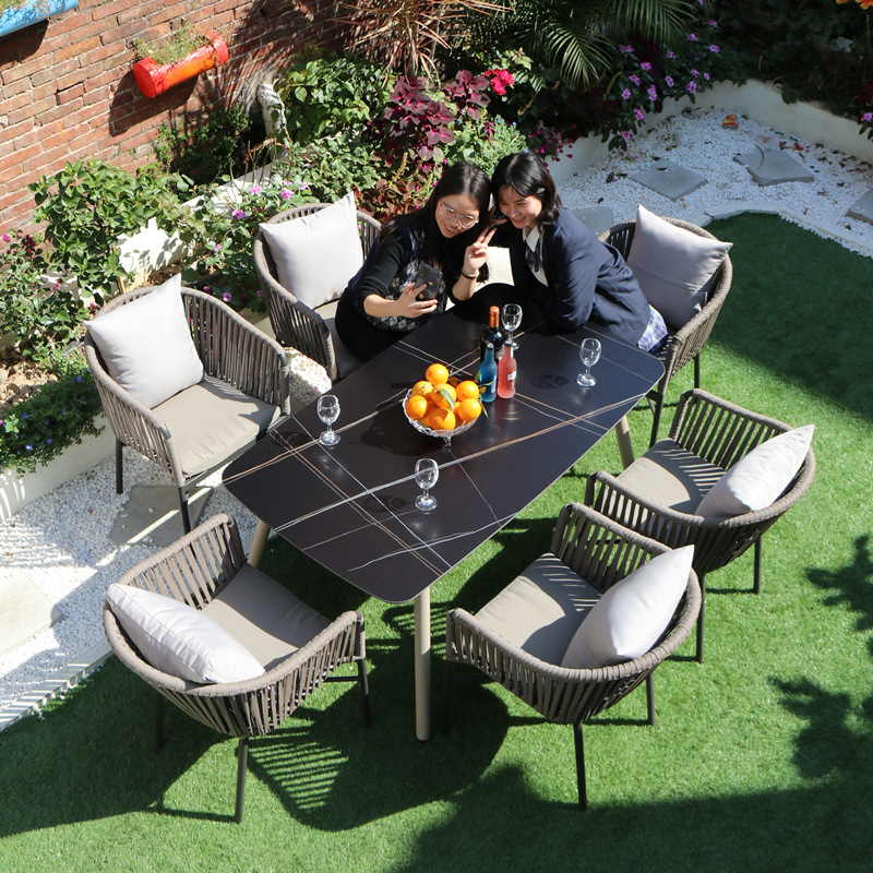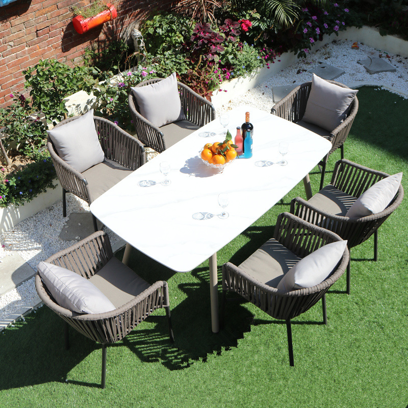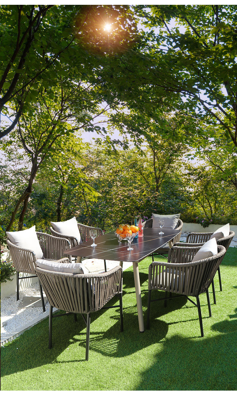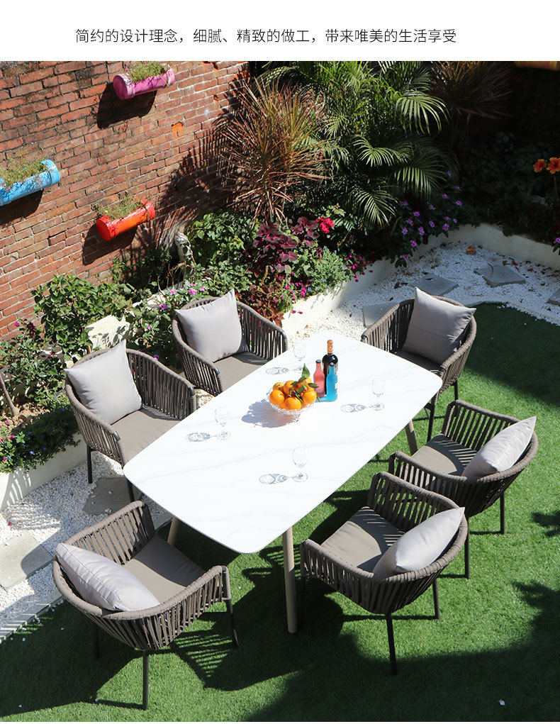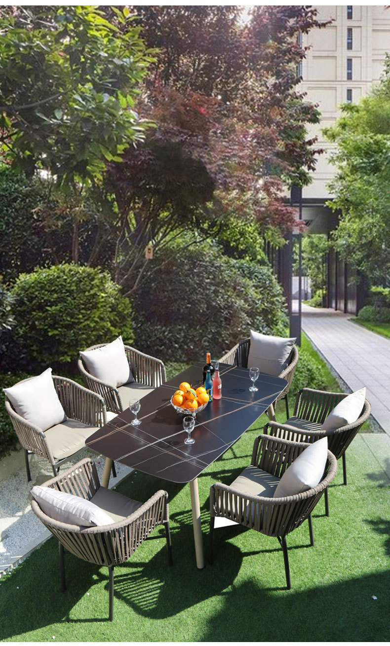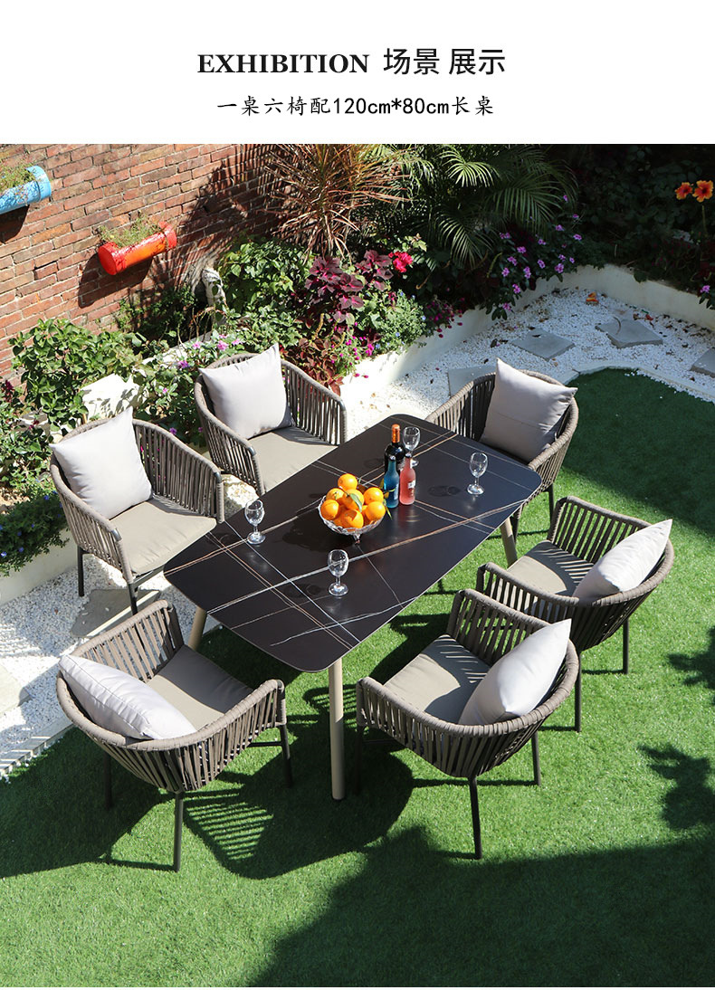 야외 등나무 테이블과 의자 조합 발코니 야외 안뜰 빌라 정원 레저 의자 로프 등나무 의자 바위 보드 식탁과 의자
