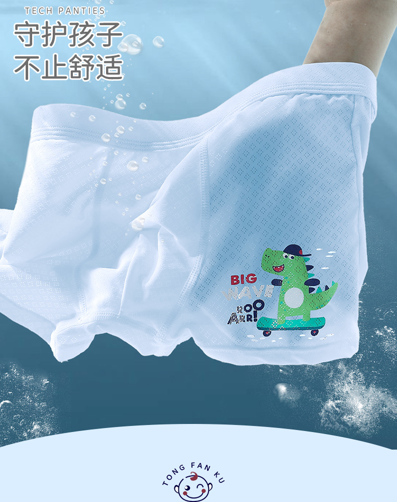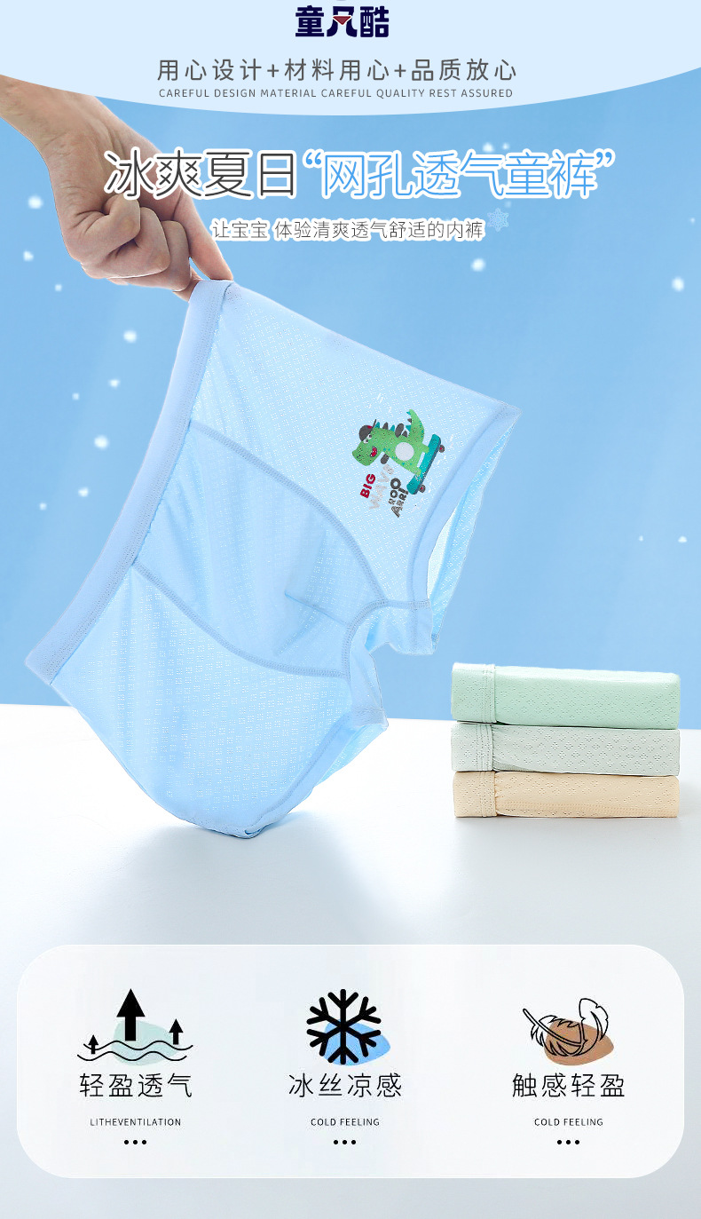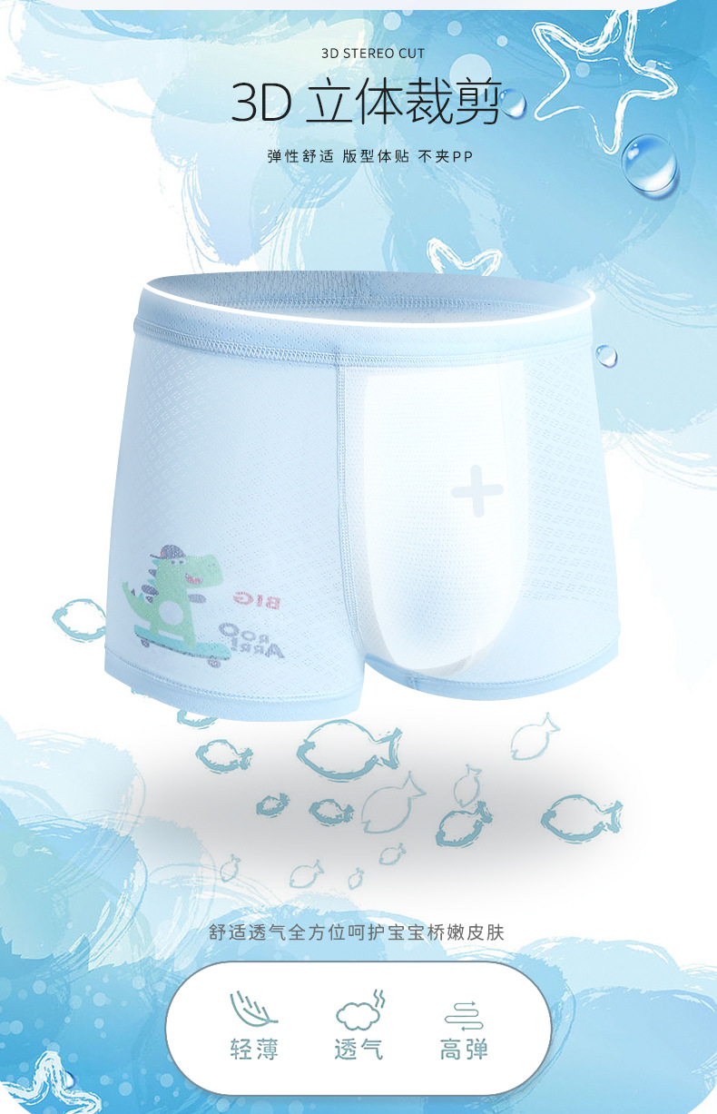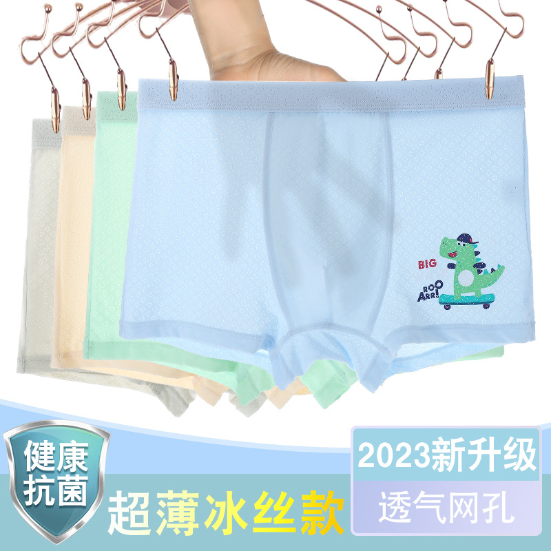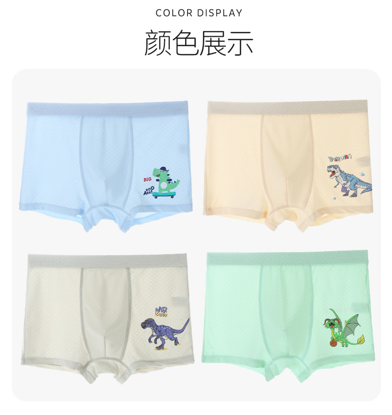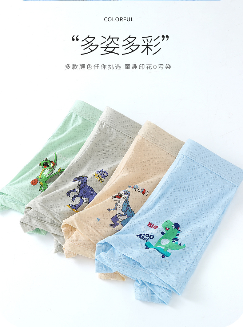 어린이 속옷 소년의 얼음 실크 모달 항균 여름 얇은 통기성 중간 및 큰 소년의 만화 공룡 속옷