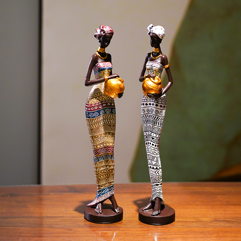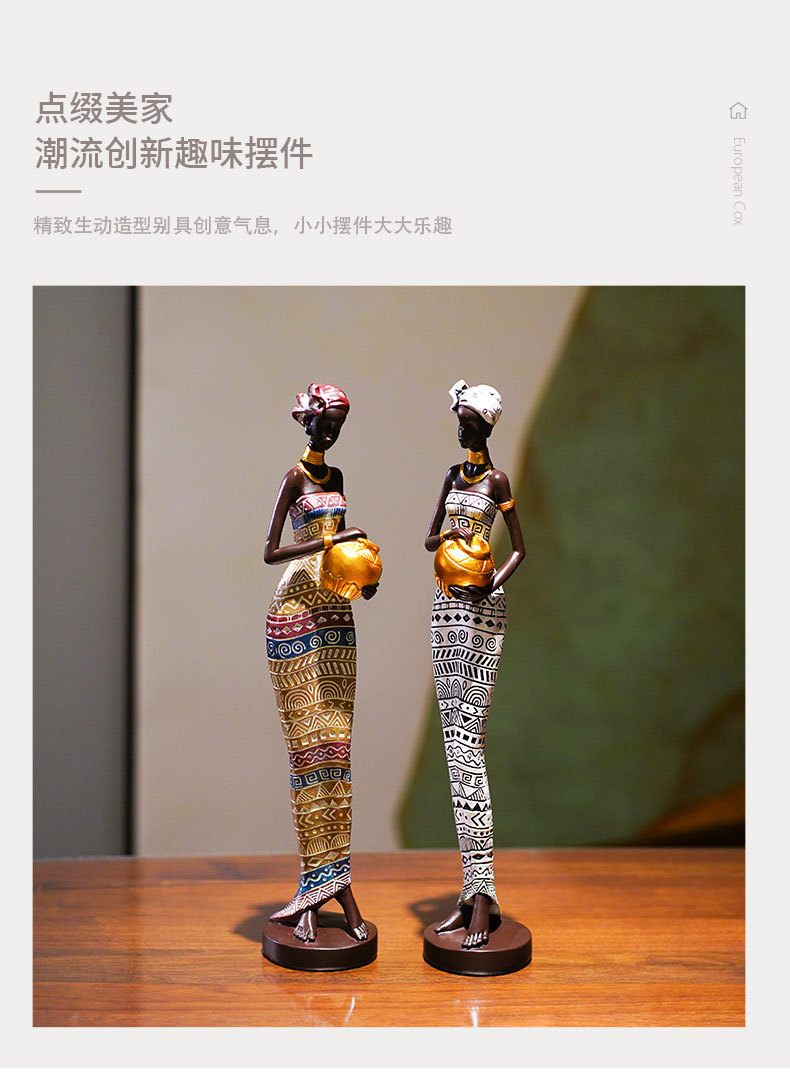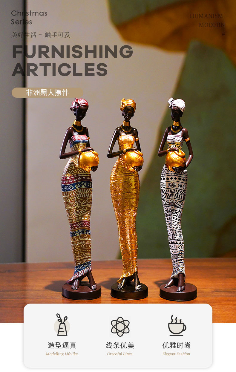 아프리카 소녀 공예 장식품 거실 입구 TV 캐비닛 와인 캐비닛 장식 크리 에이 티브 라이트 럭셔리 데스크탑 부드러운 장식