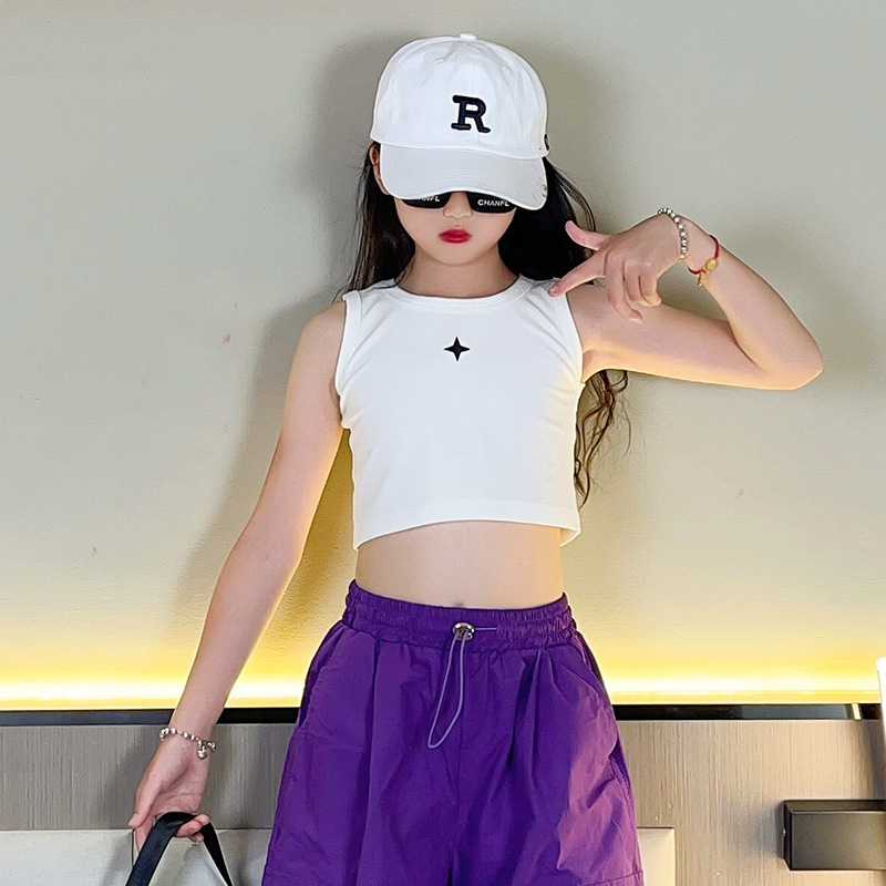 소녀 크록 바지 여름 스트레이트 바지 큰 어린이 스포츠 바지 여름 여자 조끼 티셔츠 스트리트 댄스 세트스토어 가기