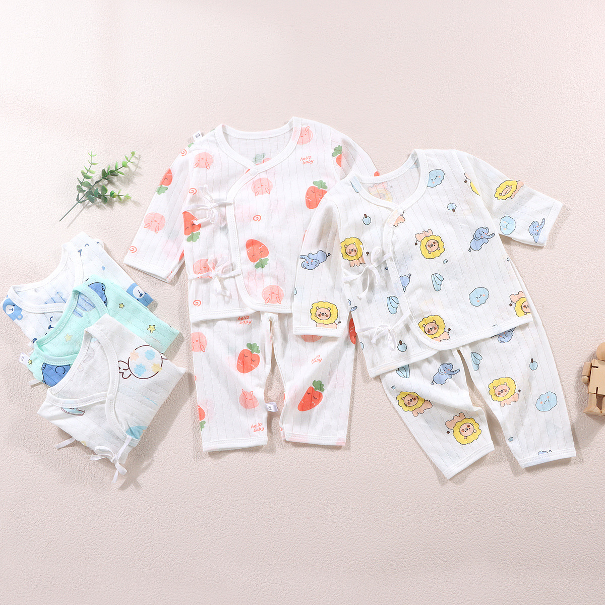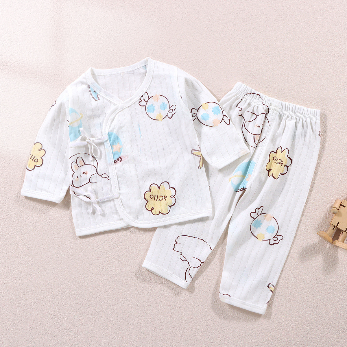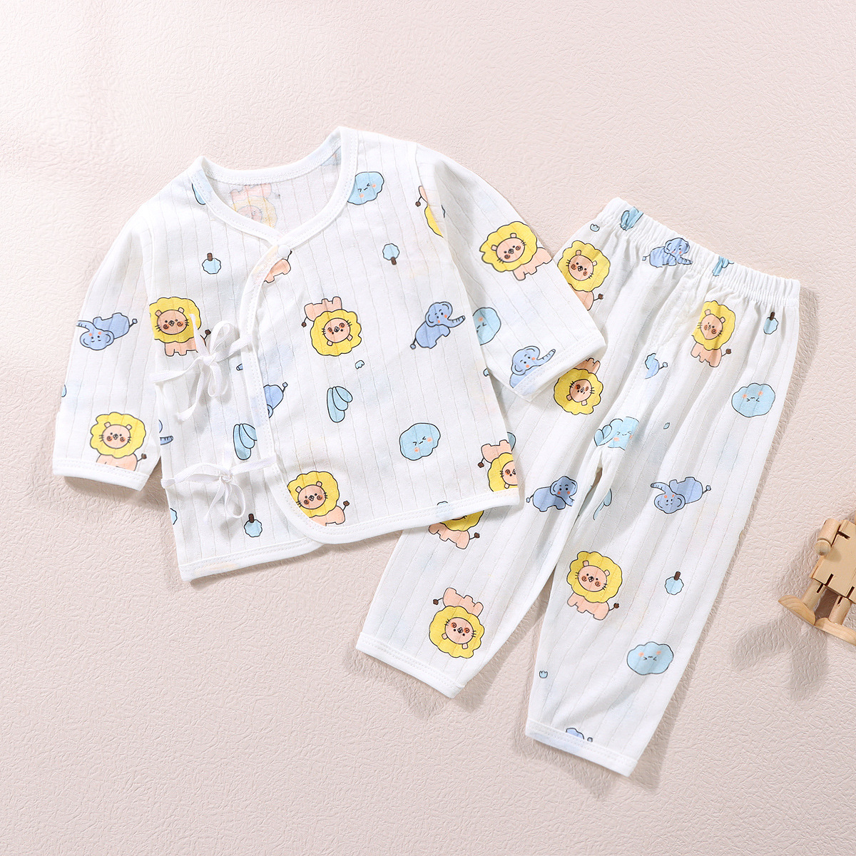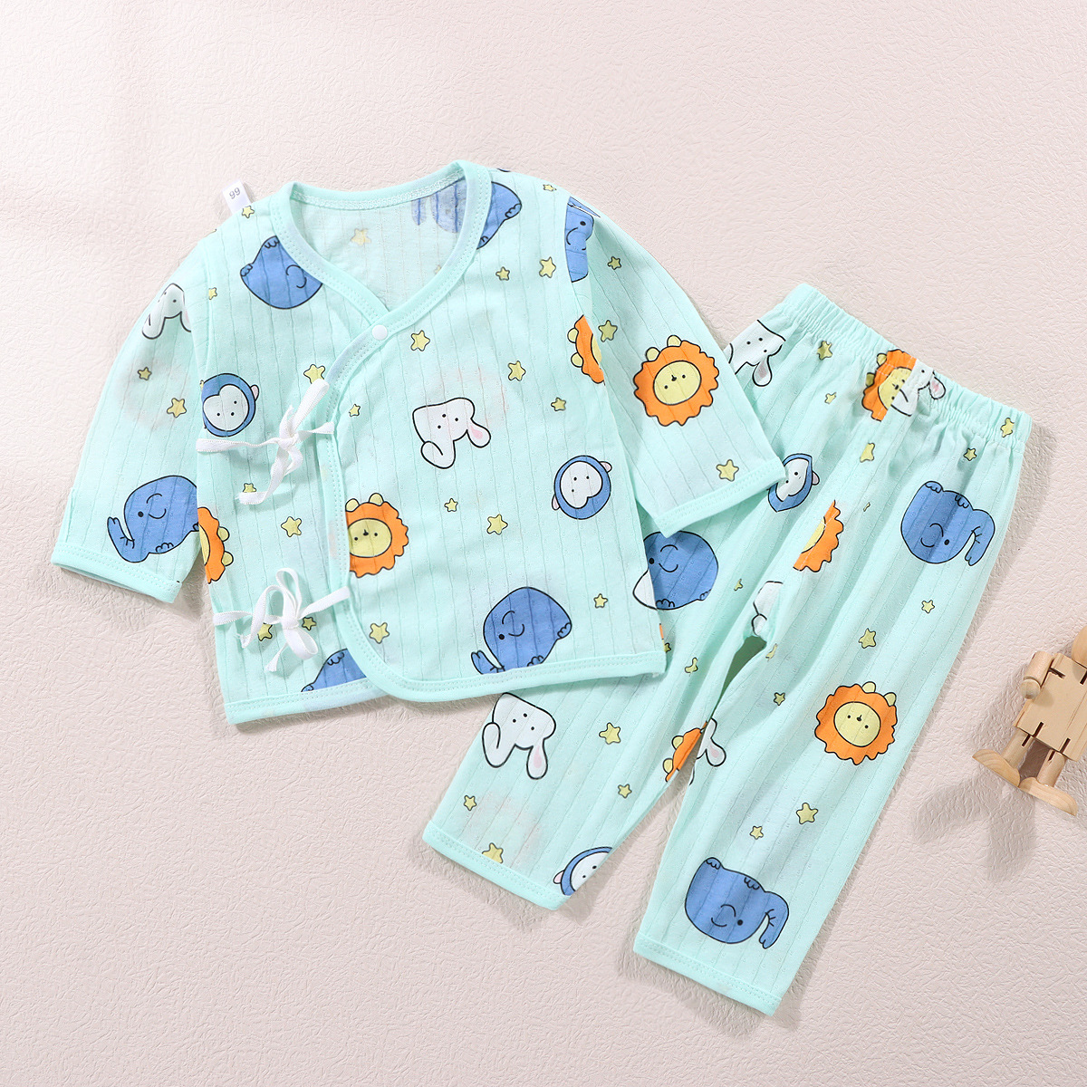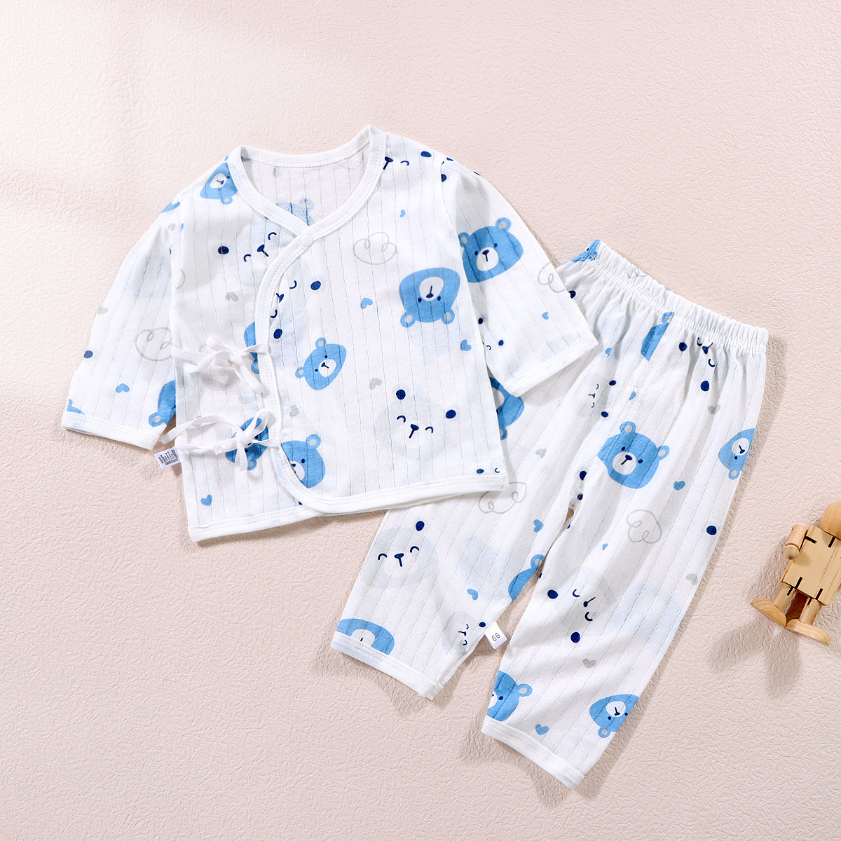 여름 새로운 아기 옷 수도사 옷 면 클래스 분할 속옷 세트 레이스 업 긴 소매 바지 잠옷 유행스토어 가기