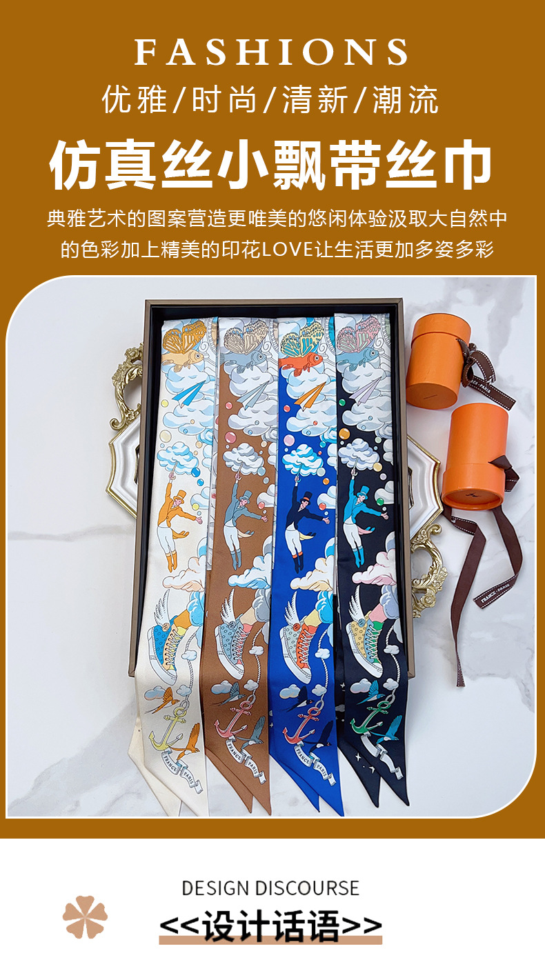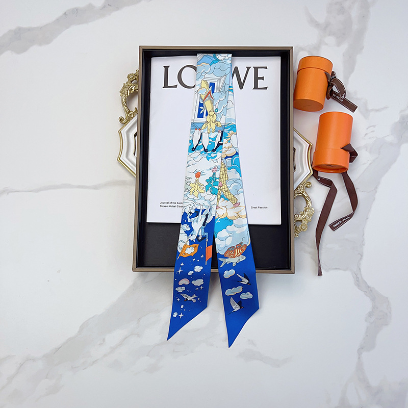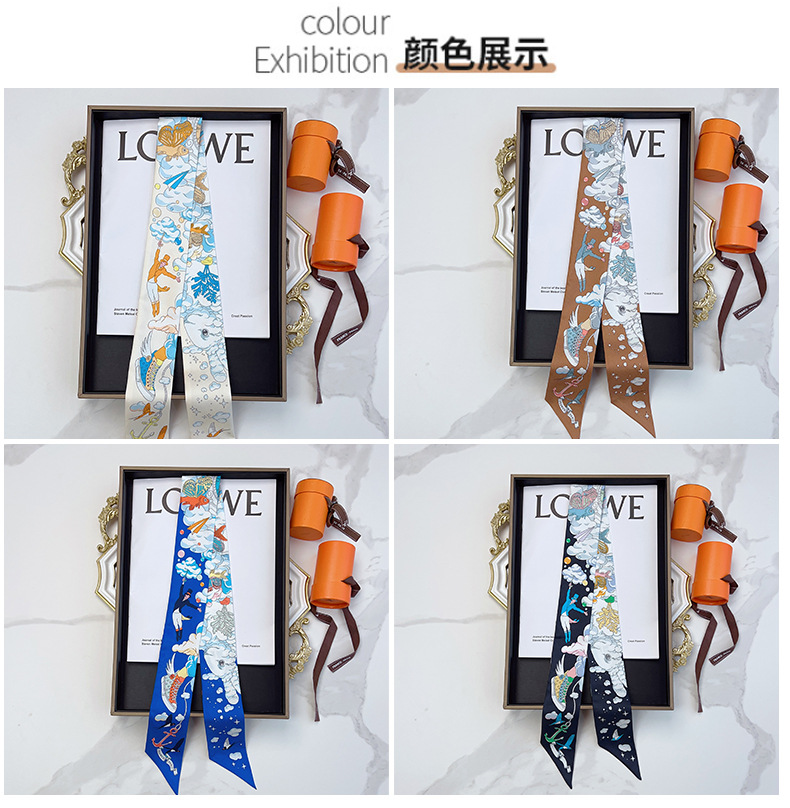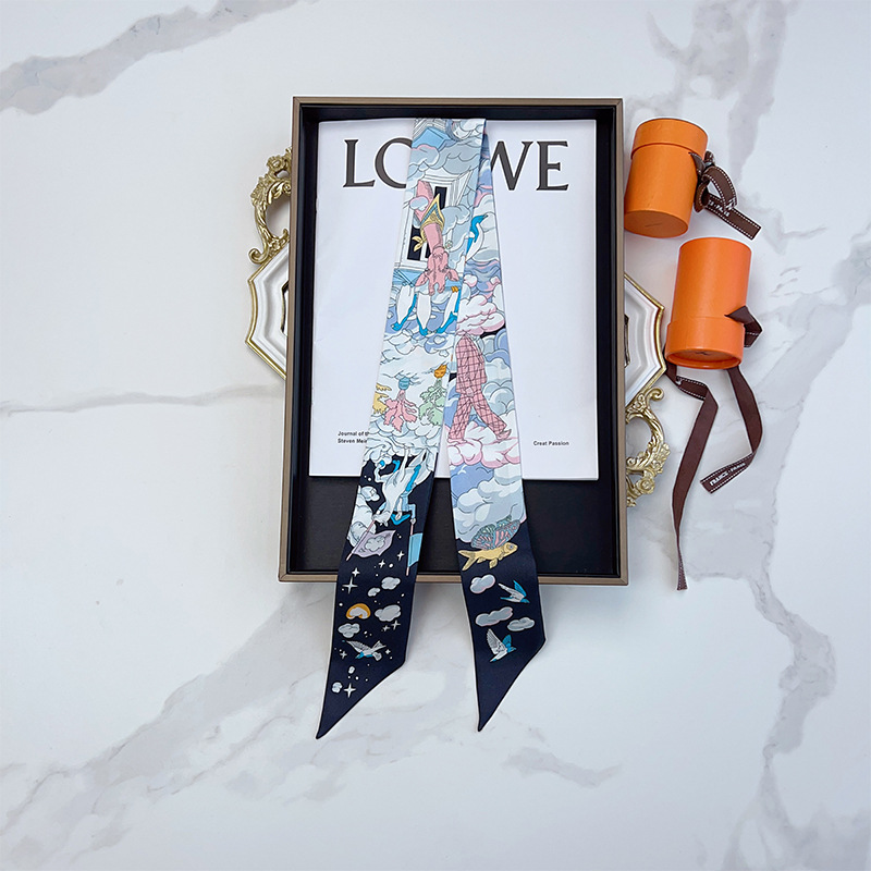 18 Mmi 실크 능직 섹션 클라우드 비엔티안 작은 긴 스카프 리본 에스닉 스타일 장식 작은 실크 스카프 포장 가방