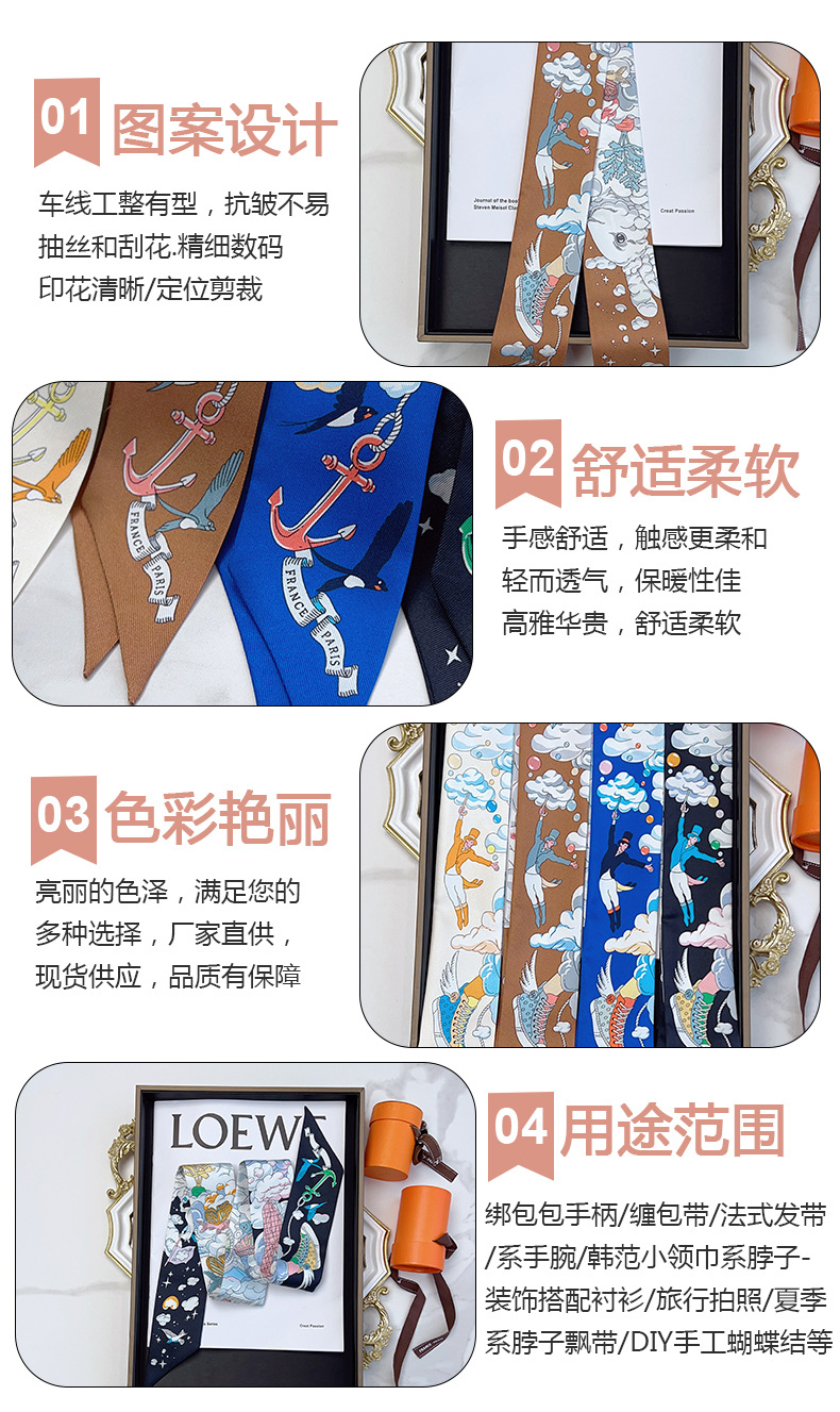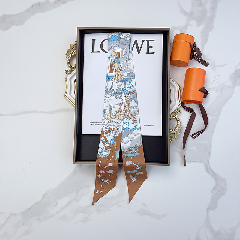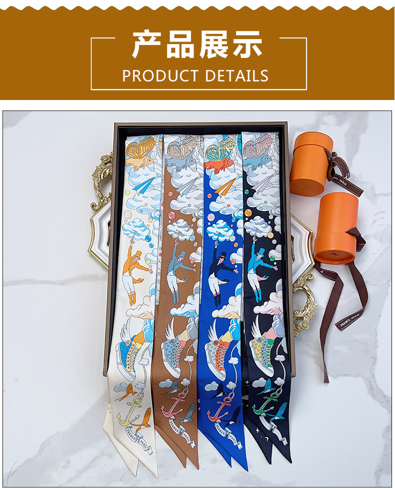 18 Mmi 실크 능직 섹션 클라우드 비엔티안 작은 긴 스카프 리본 에스닉 스타일 장식 작은 실크 스카프 포장 가방스토어 가기