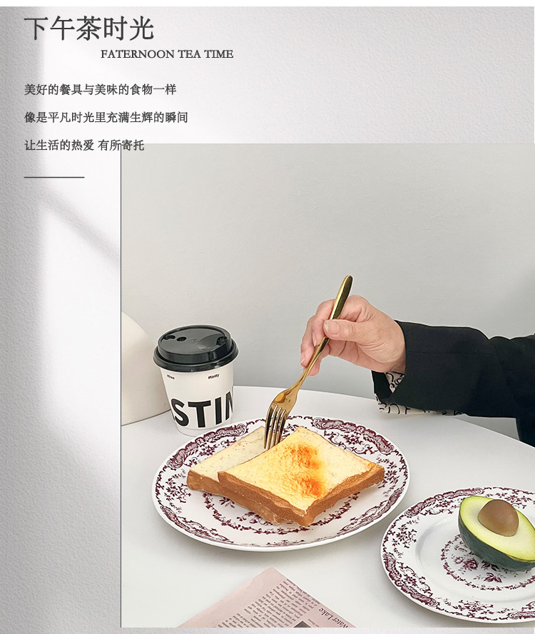 프랑스 스타일 장미 꽃 세라믹 디너 플레이트 가정용 접시 클래식 인쇄 유약 컬러 스파게티 샐러드 디저트 서양 접시스토어 가기