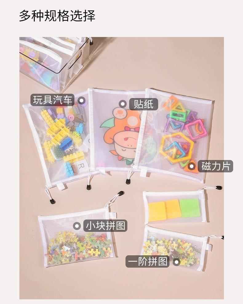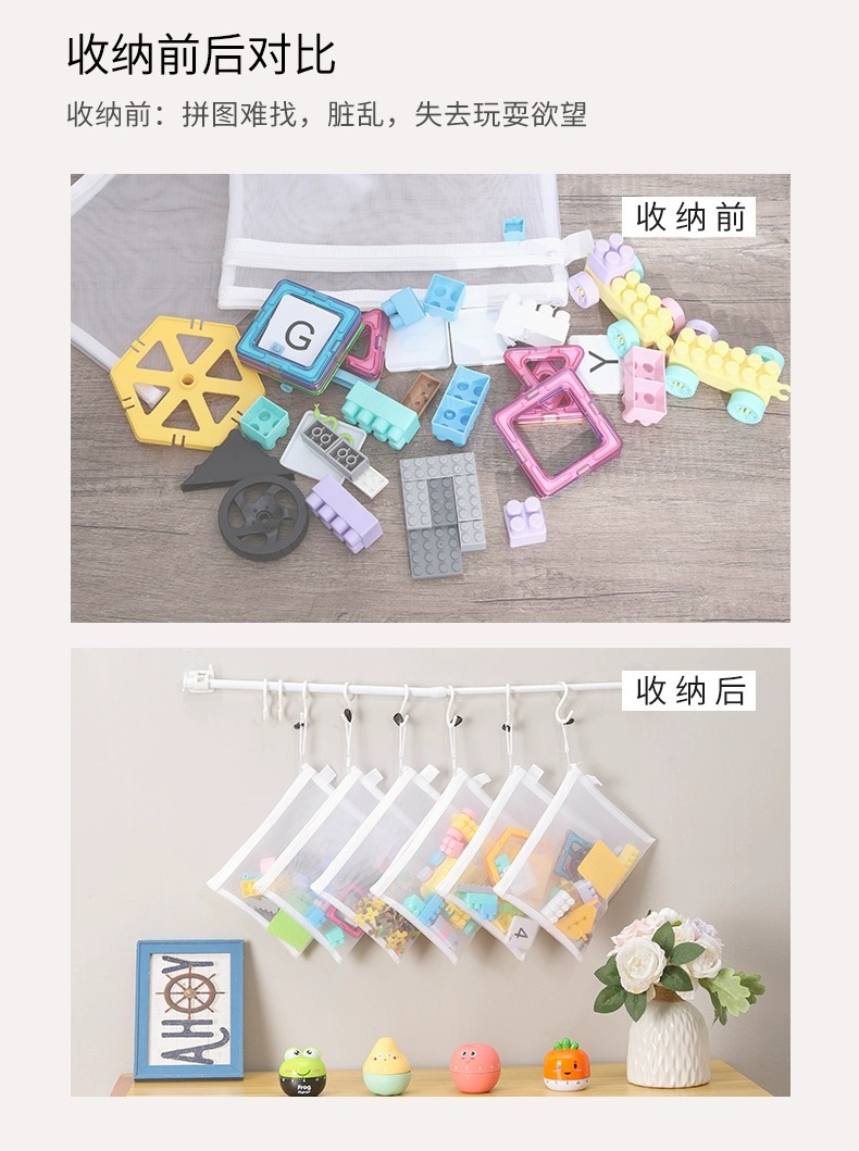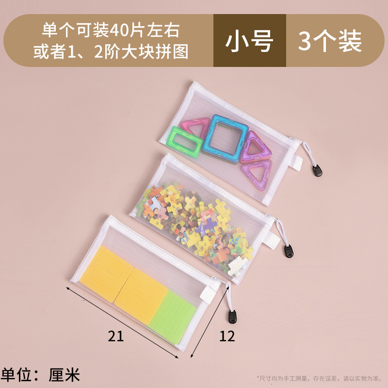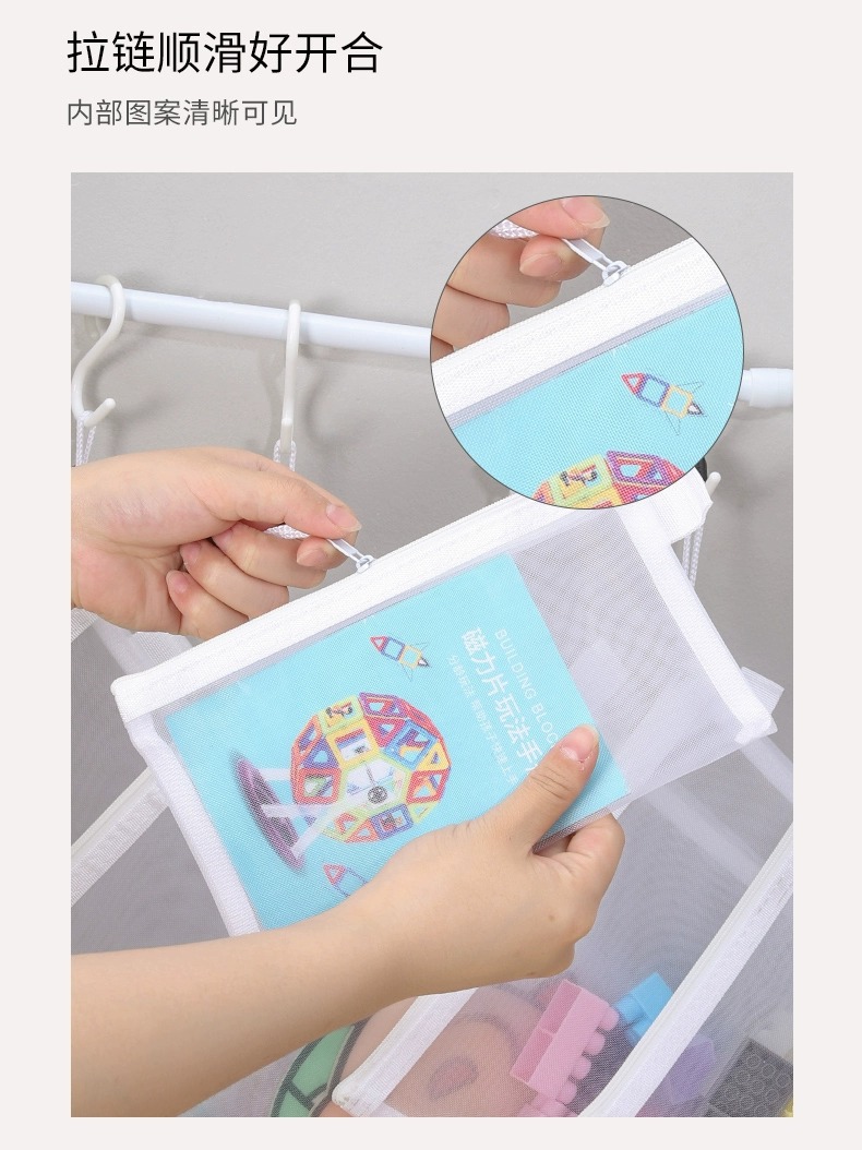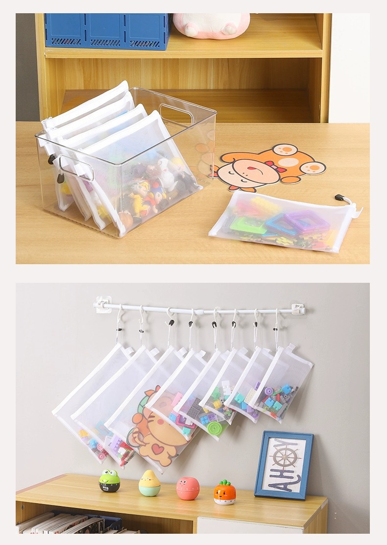 장난감 보관 가방 퍼즐 분류 지퍼 메쉬 가방 어린이 작은 입자 빌딩 블록 마무리 투명 상자 파일 교수형 가방