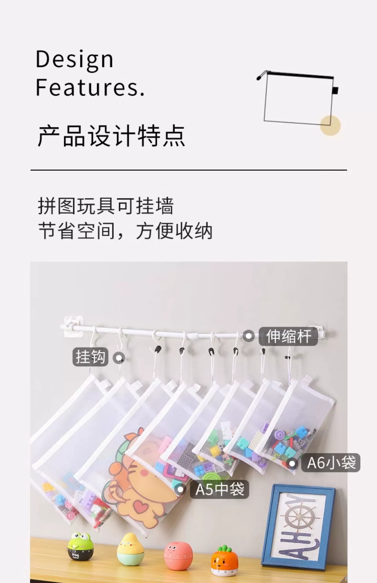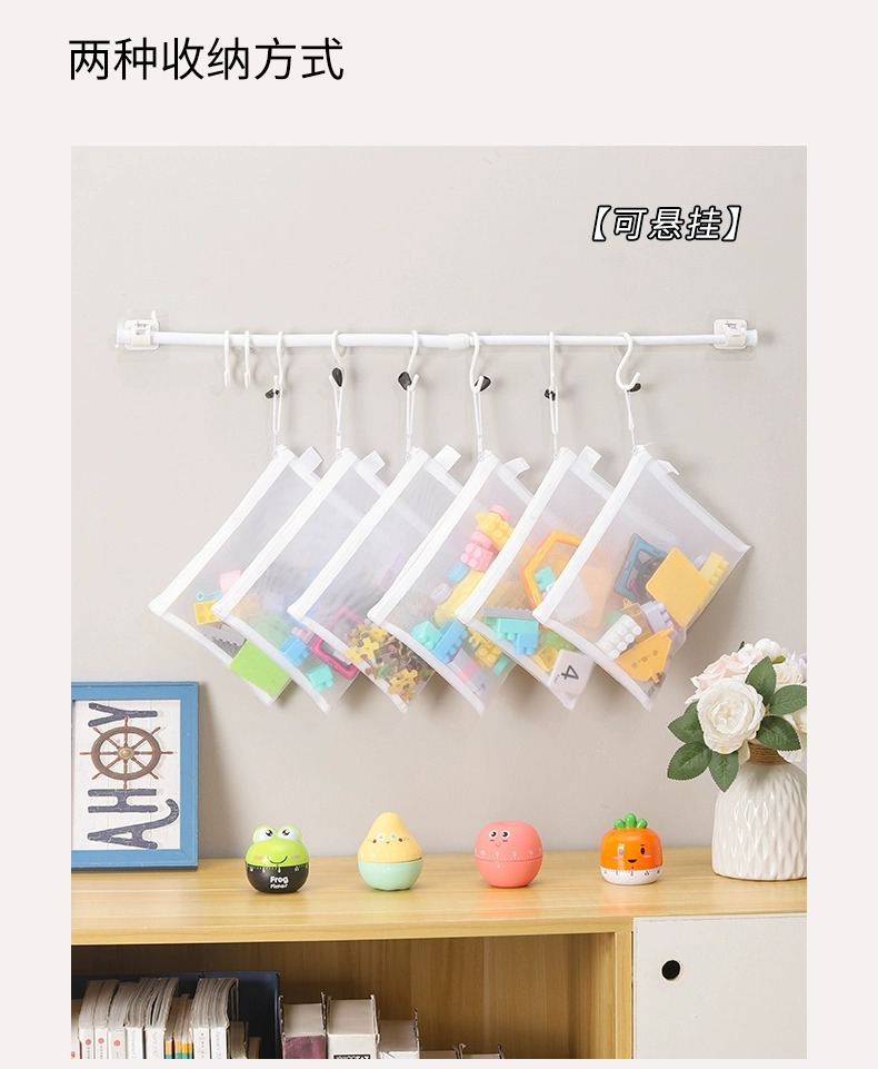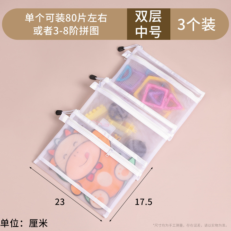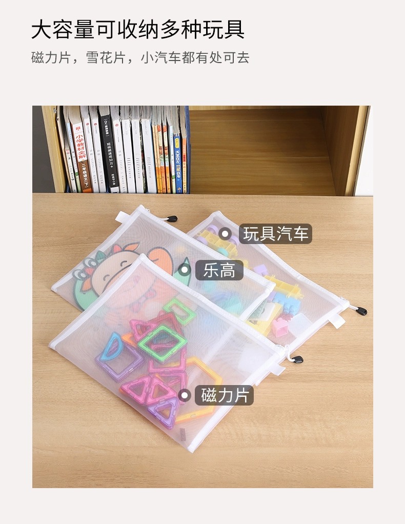 장난감 보관 가방 퍼즐 분류 지퍼 메쉬 가방 어린이 작은 입자 빌딩 블록 마무리 투명 상자 파일 교수형 가방