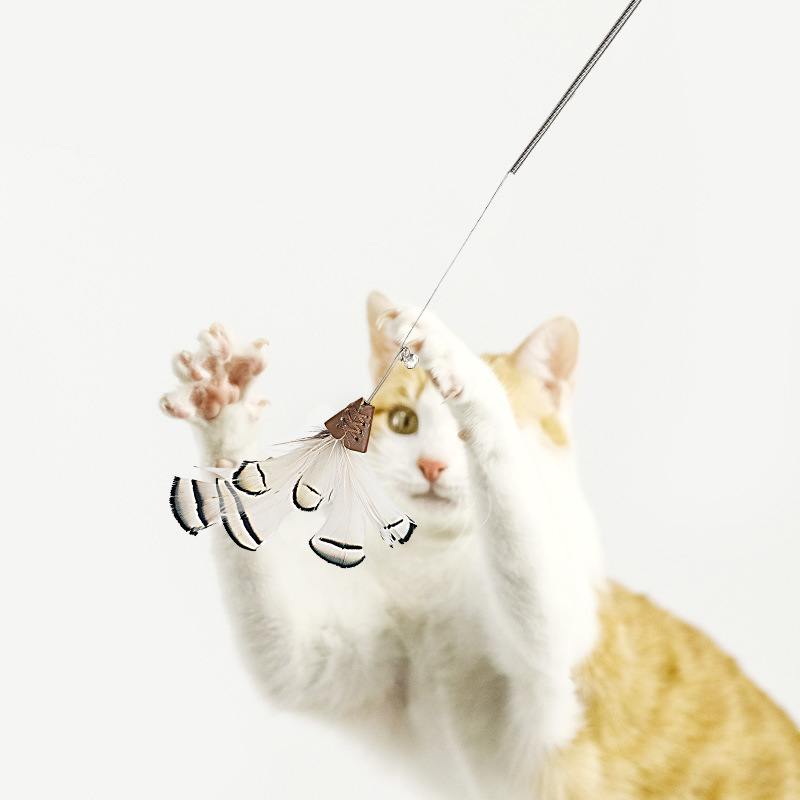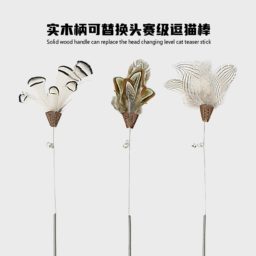 그물 빨간 CFA 클래스 나무 손잡이 봄 재미 고양이 스틱 고양이 대화 형 자기 안녕 장난감 교체 가능한 깃털 벨 헤드