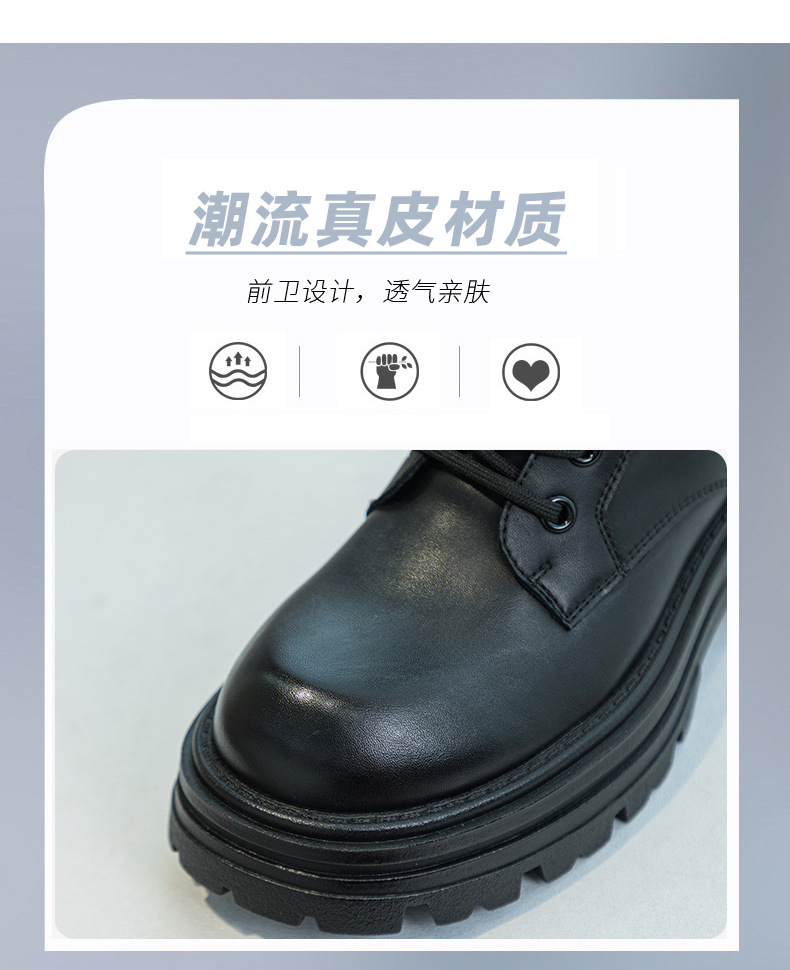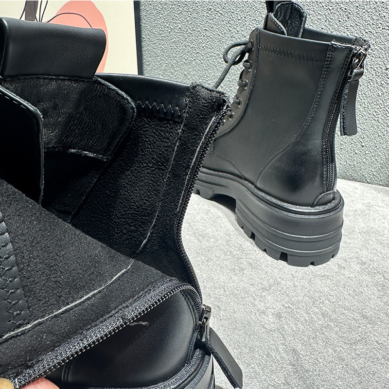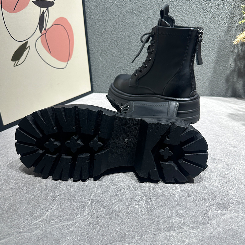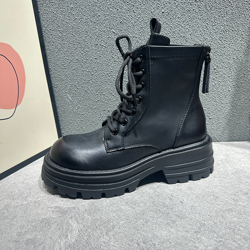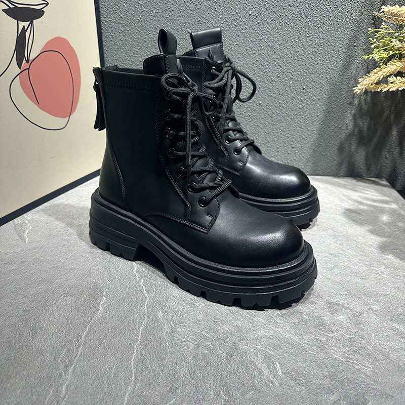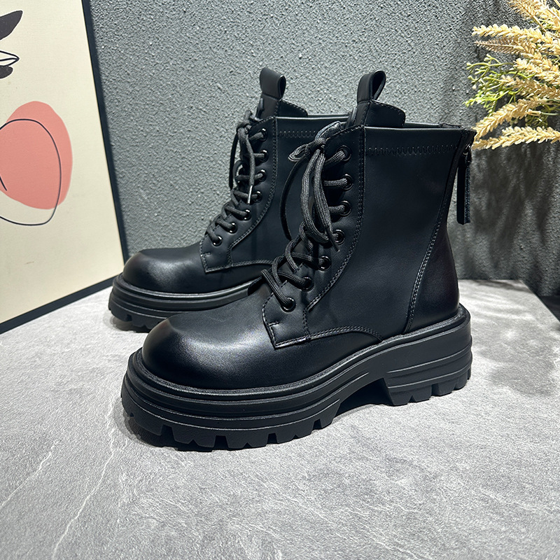 마틴 부츠 여성 가을과 겨울 2023 새로운 블랙 영국 스타일 앵클 부츠 여성용 두꺼운 바닥 증가 레이스 업 가죽 부츠
