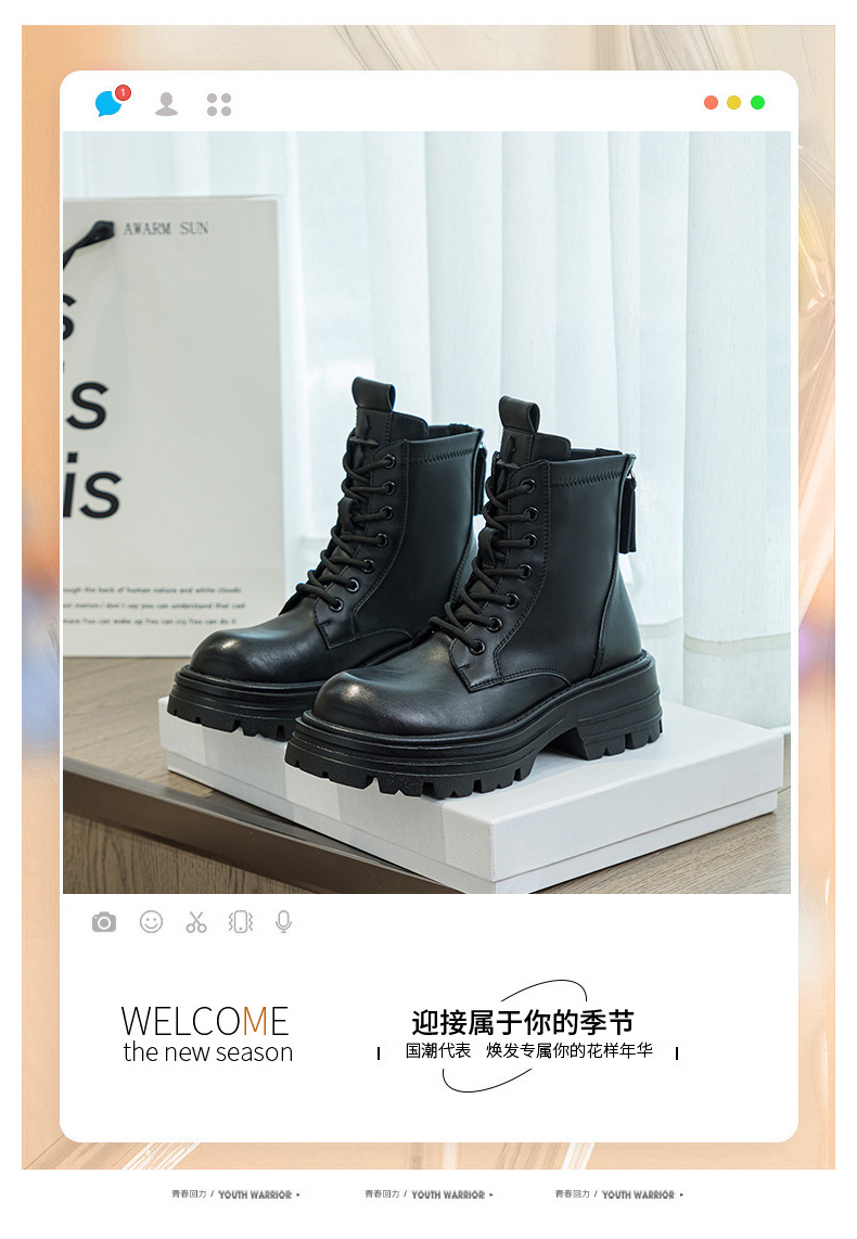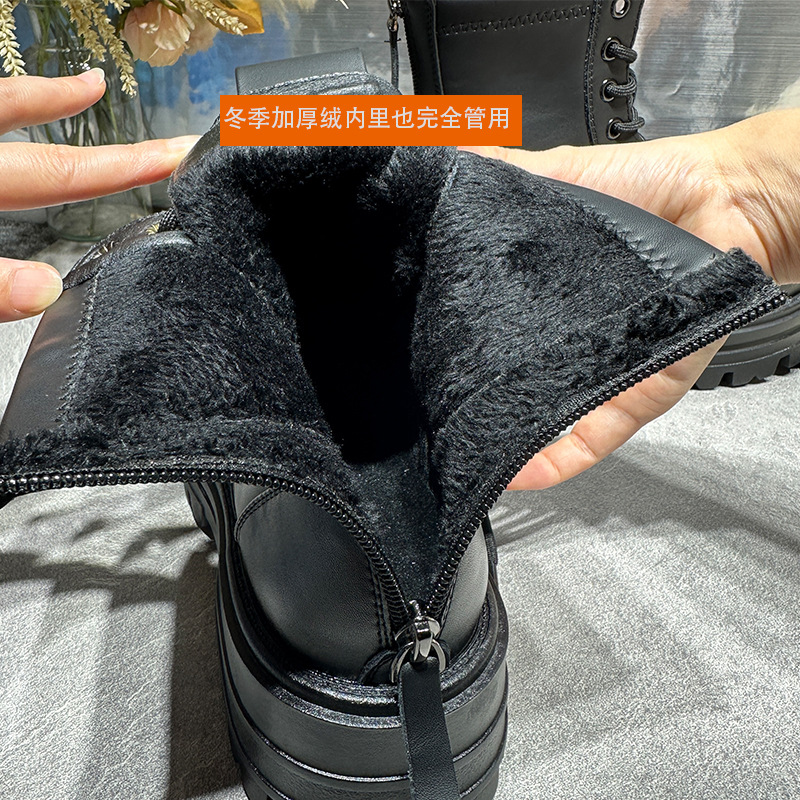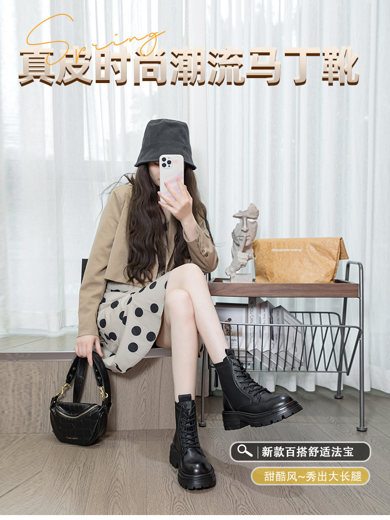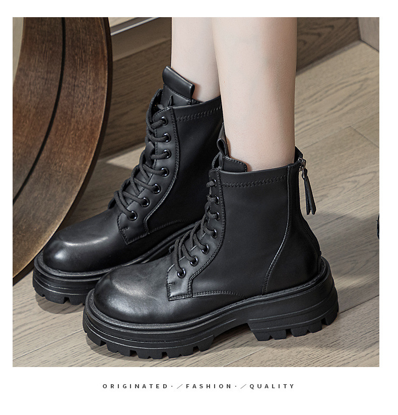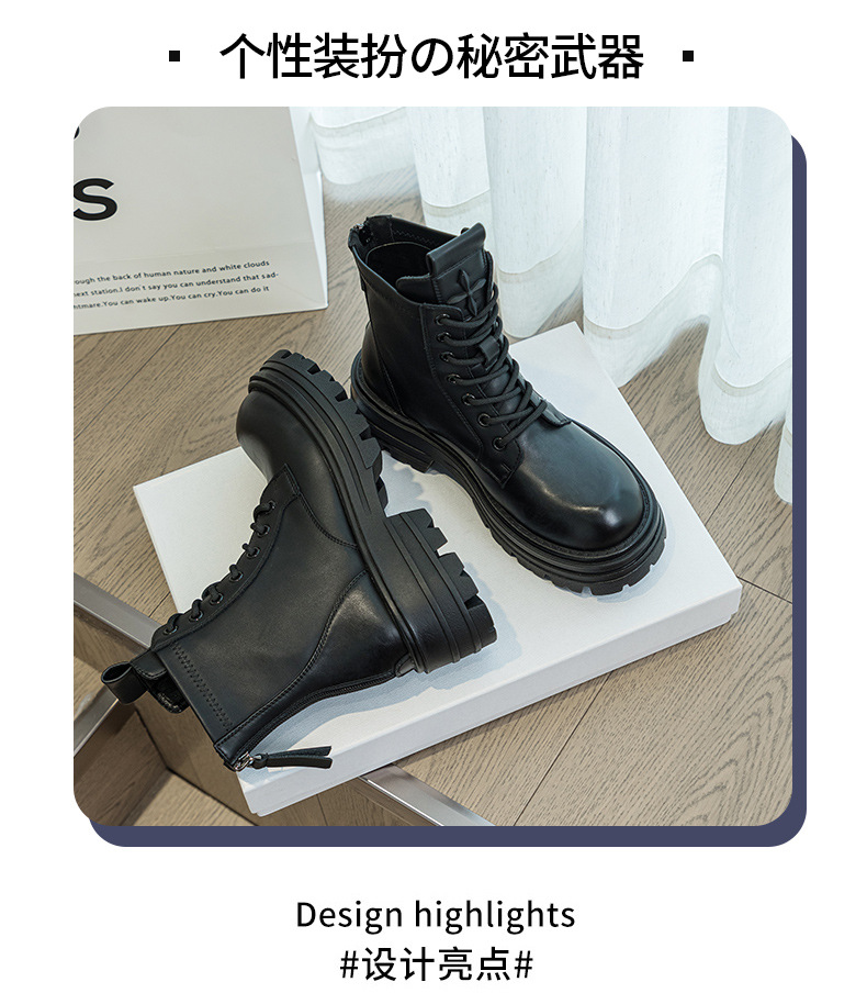 마틴 부츠 여성 가을과 겨울 2023 새로운 블랙 영국 스타일 앵클 부츠 여성용 두꺼운 바닥 증가 레이스 업 가죽 부츠스토어 가기