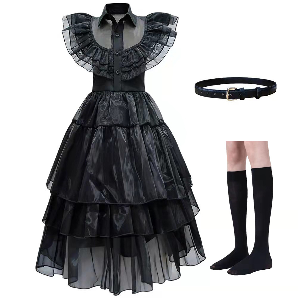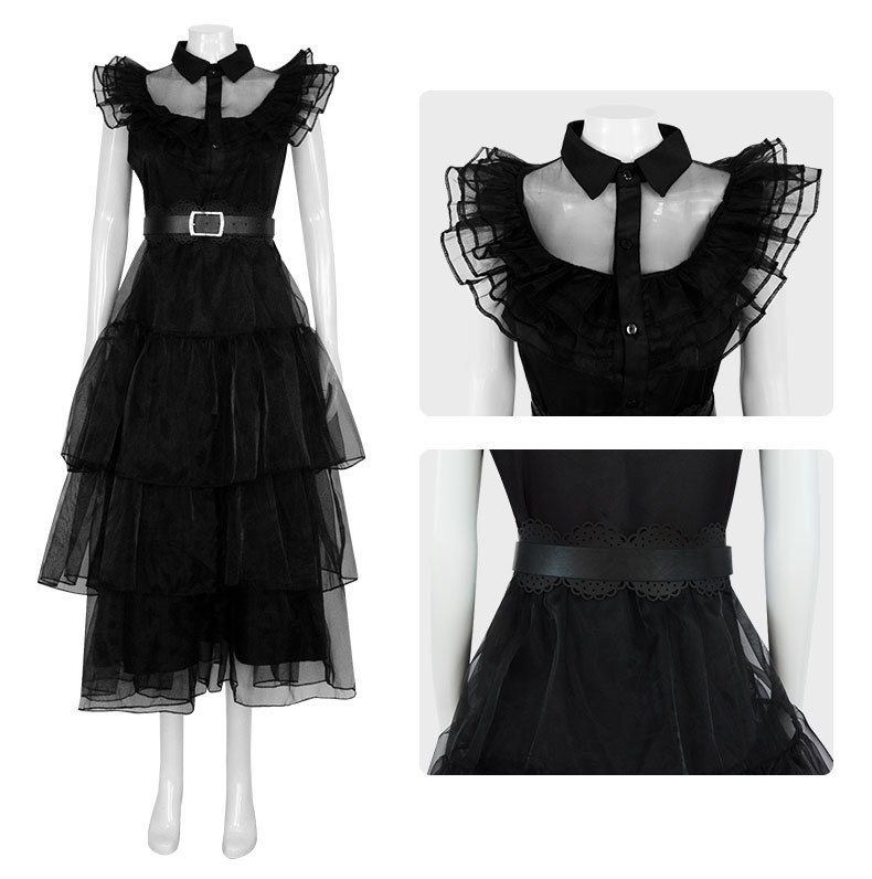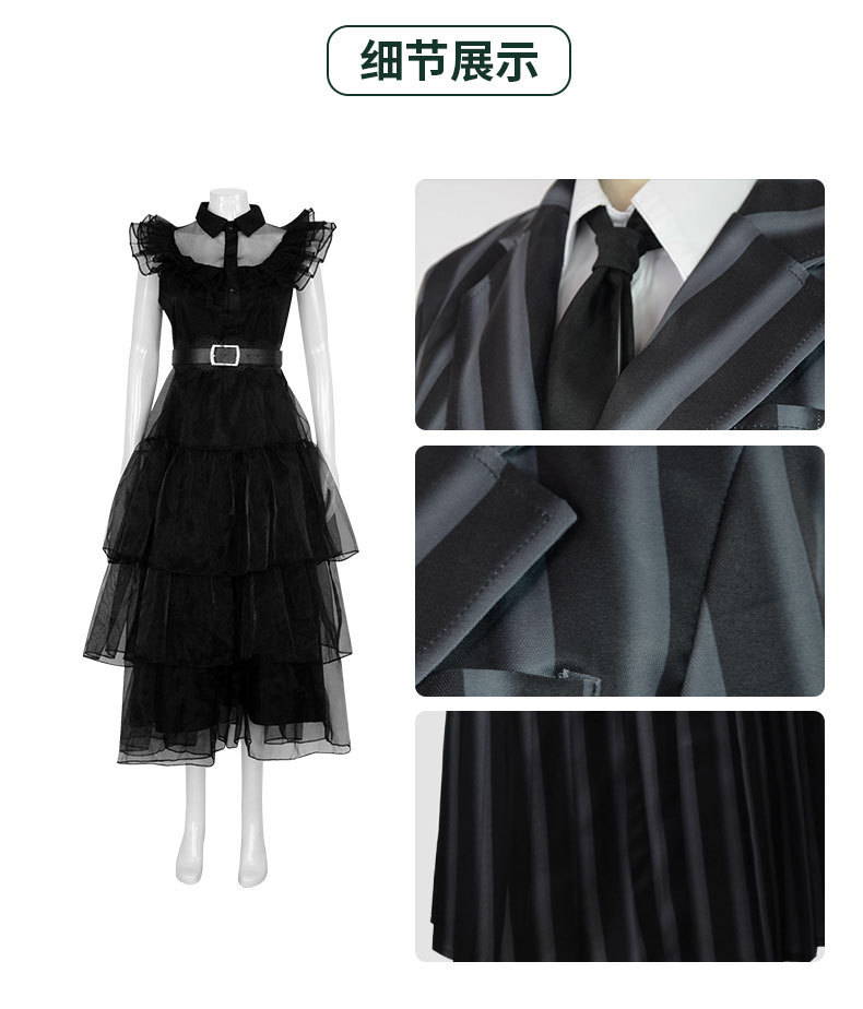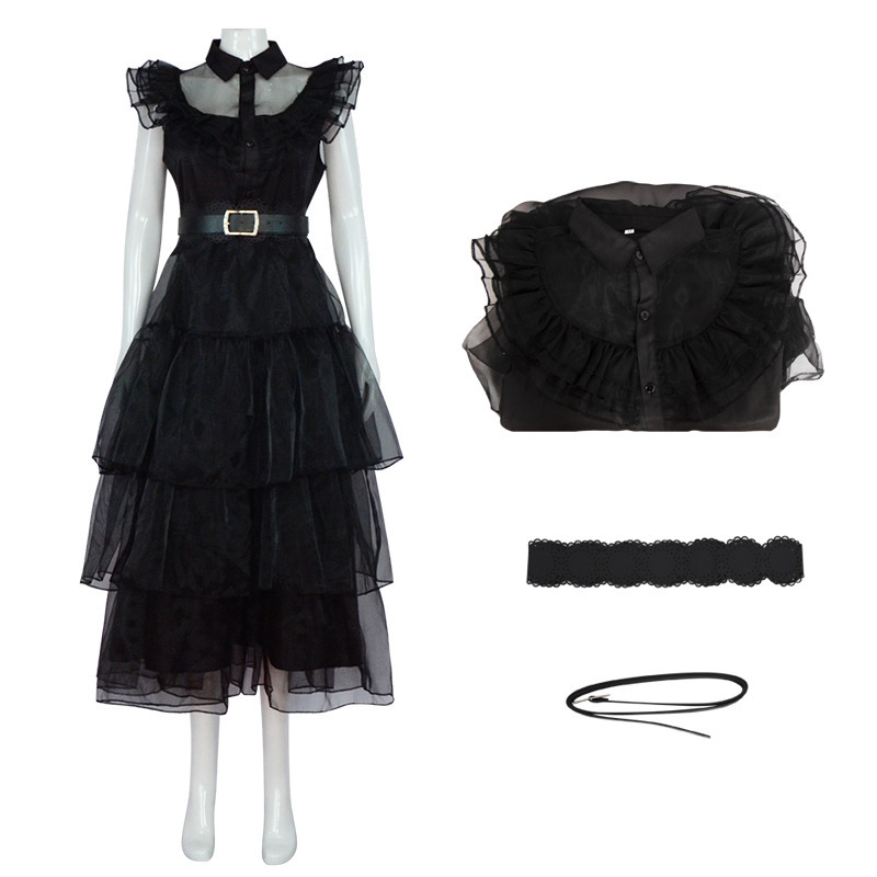 아담스 가족 cos 미국 드라마 수요일 여자 교복 코스프레 같은 스타일 원피스 서양 의류