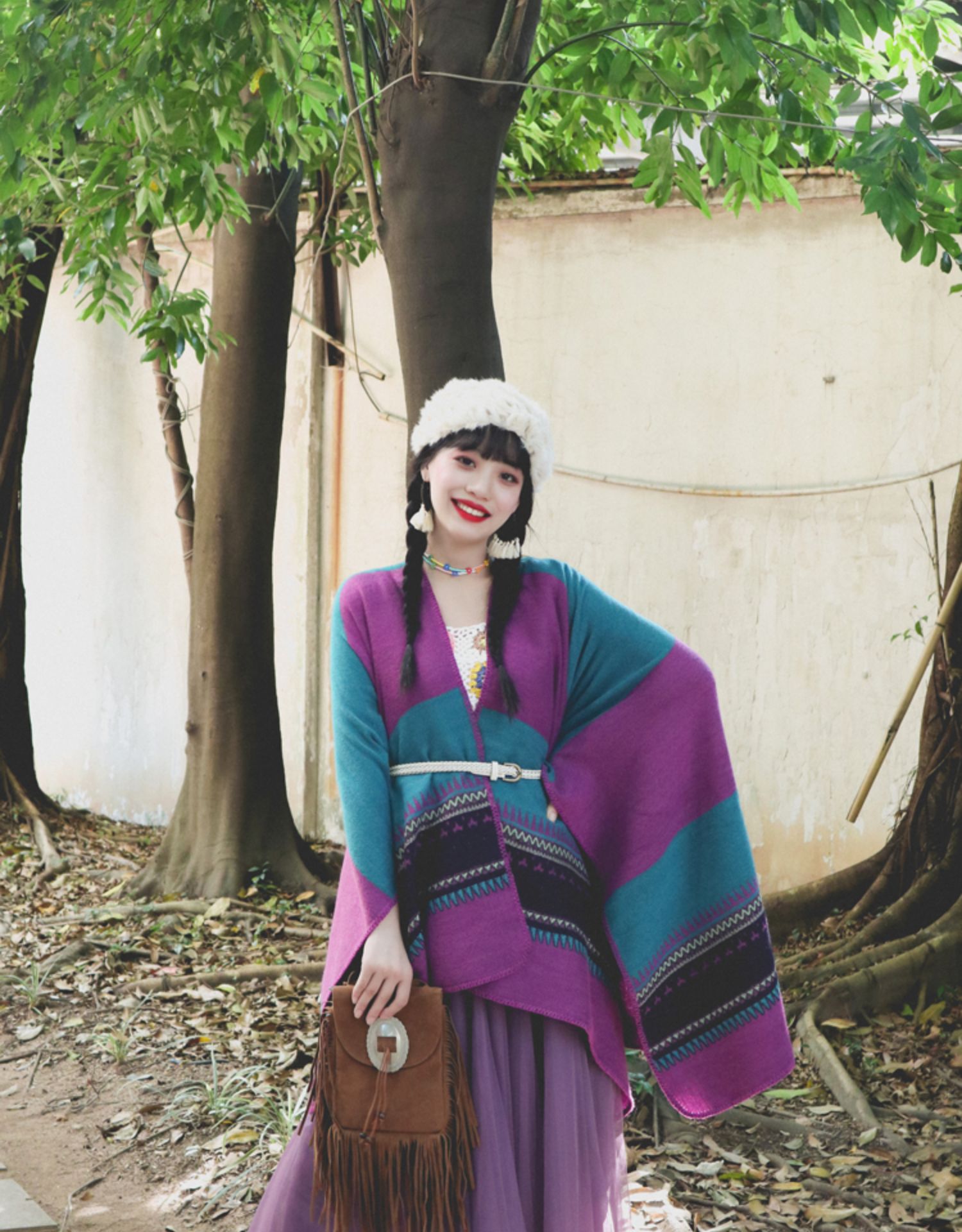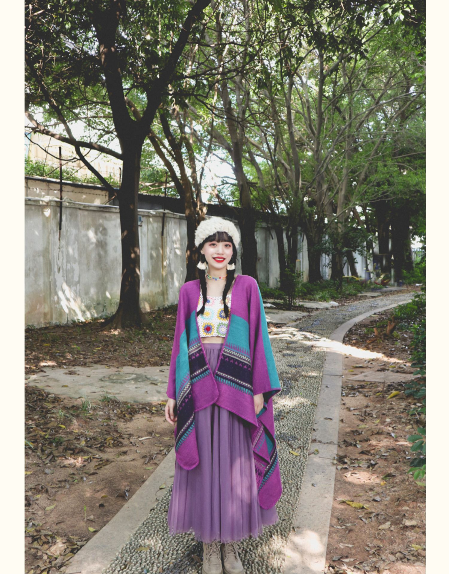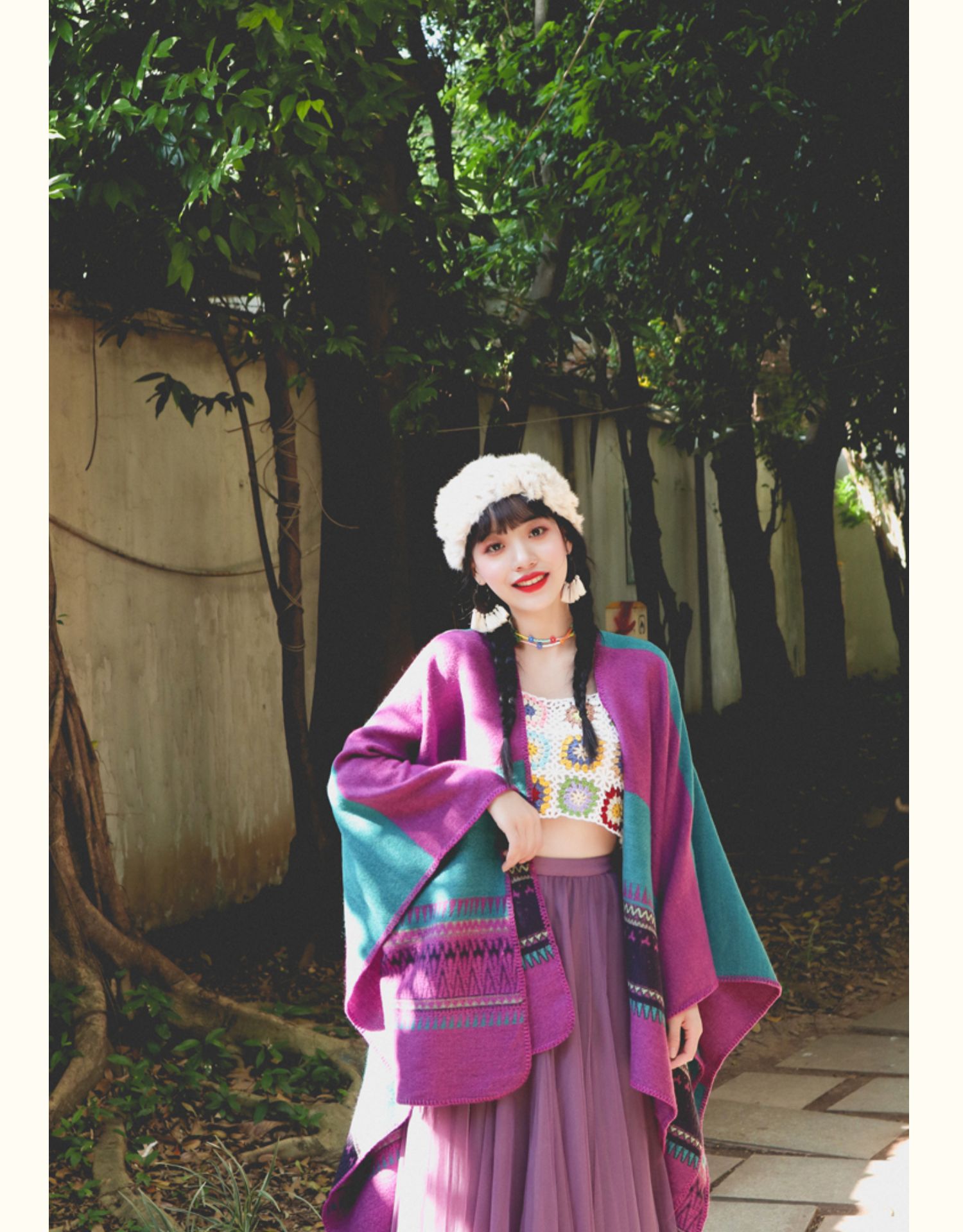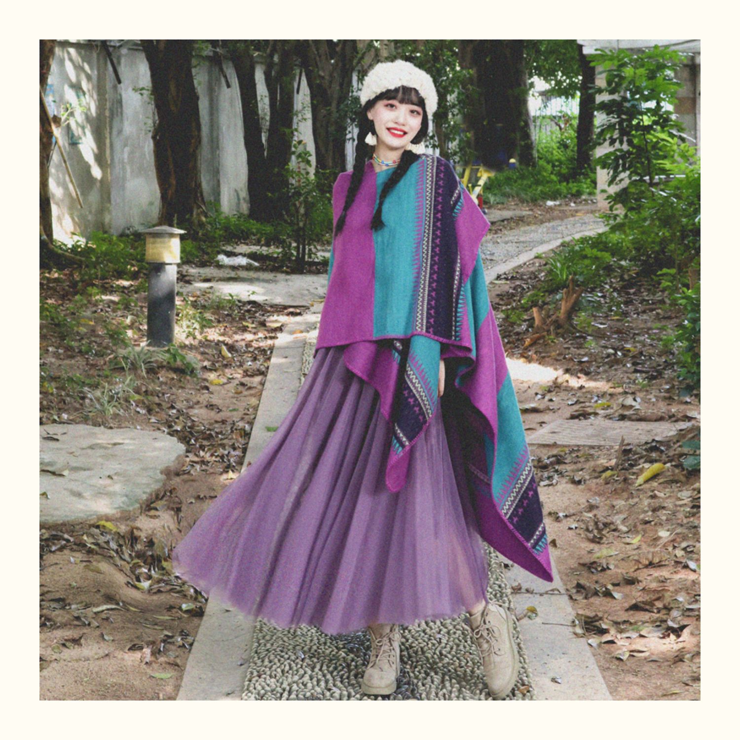 슈퍼 요정 보라색 옷 라인 ~ 에스닉 스타일 컬러 매칭 여행 따뜻한 큰 목도리 복고풍 만능 기질 스카프 케이프