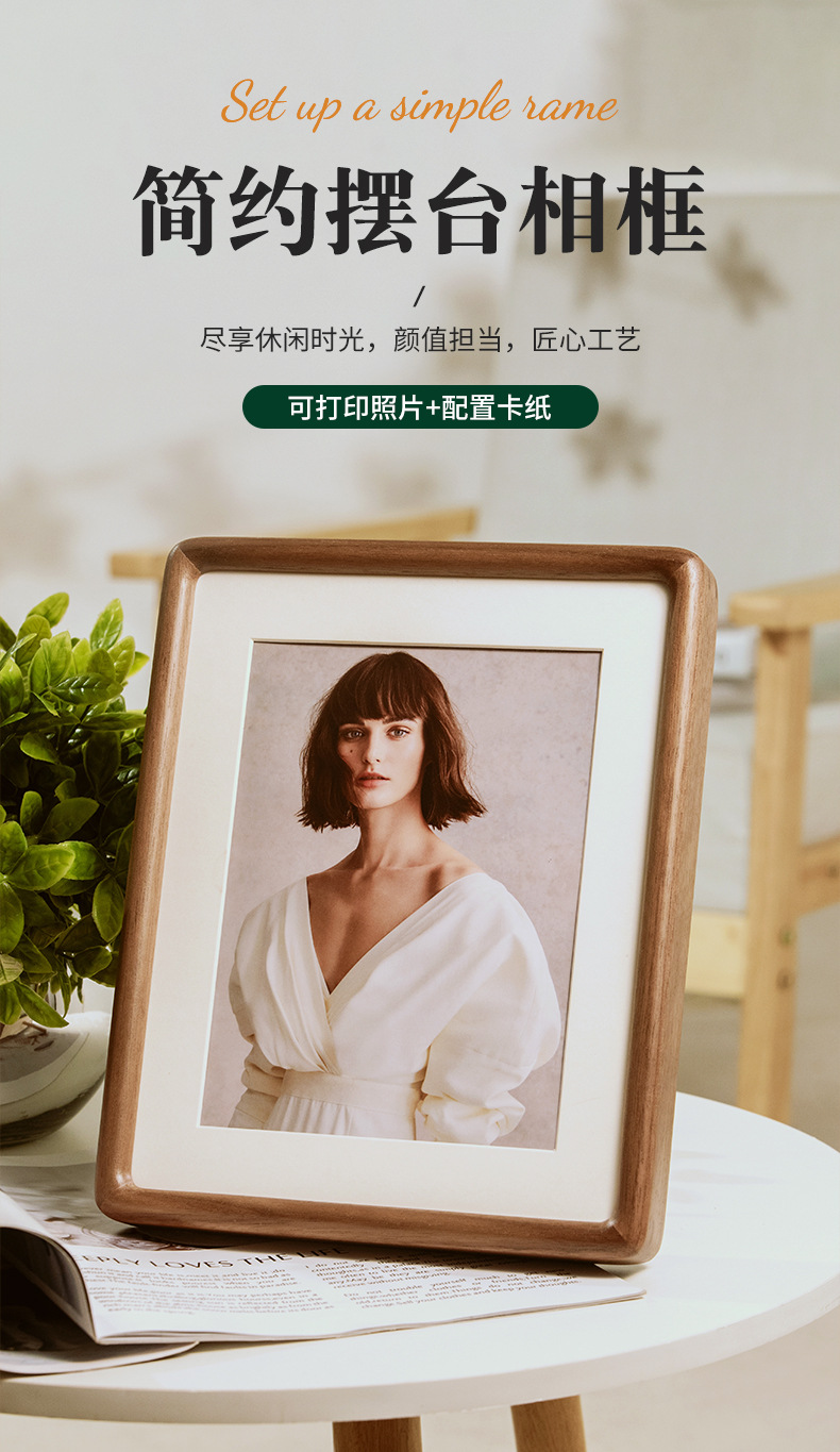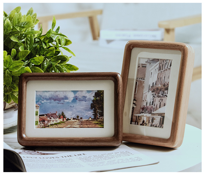 검은 호두 단단한 나무 사진 프레임 6 인치 사진 장착 프레임 둥근 장붓 구멍 및 장부 창조적 인 DIY 데스크탑 테이블 도매스토어 가기