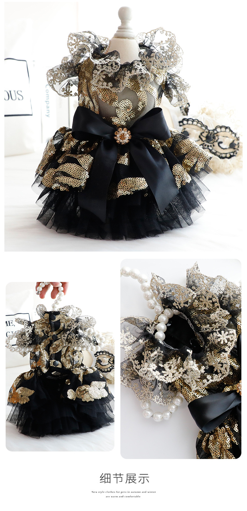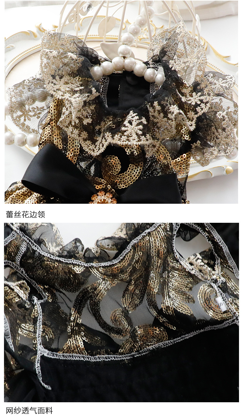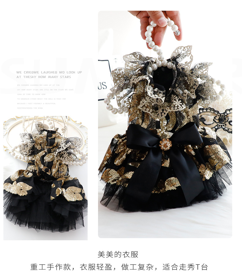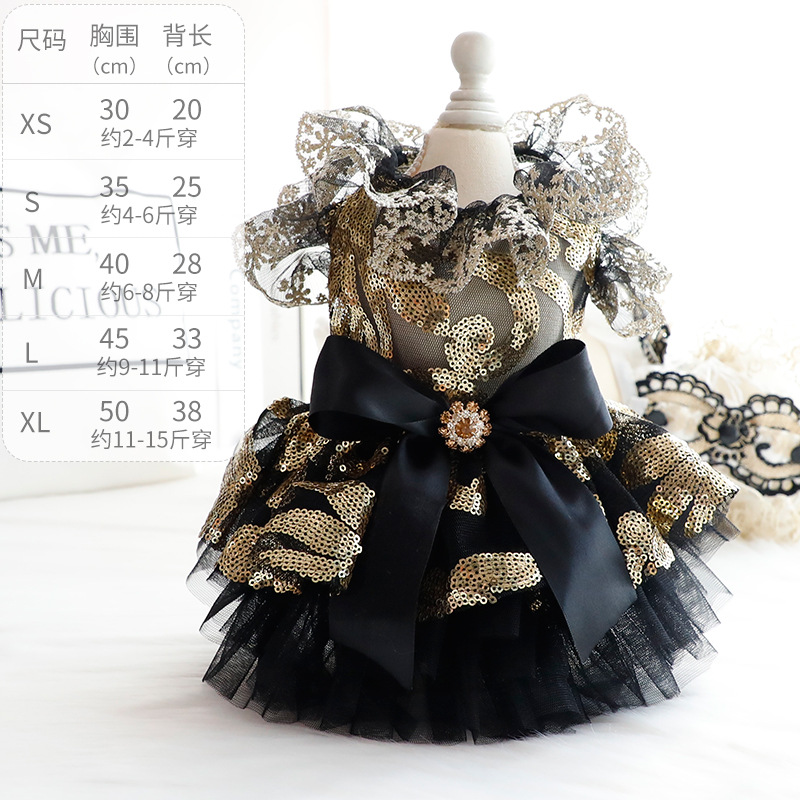 개 옷 여름 얇은 고양이 공주 원피스 블랙 골드 원피스 속이 빈 결혼식 원피스 작은 개 애완 동물 3657 도매스토어 가기