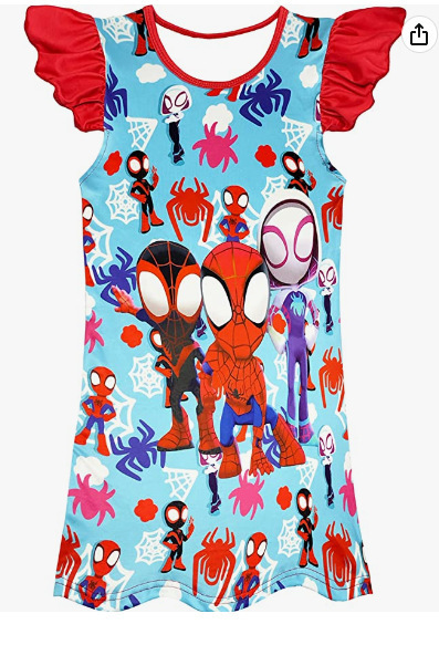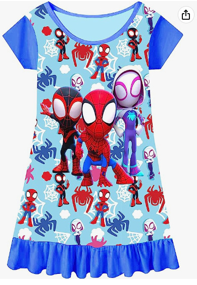2023 마블 그웬 스파이더 맨 시리즈 어린이 비행 소매 원피스 사계절 홈 잠옷 소녀 스커트 도매스토어 가기