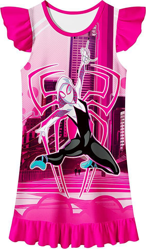 2023 마블 그웬 스파이더 맨 시리즈 어린이 비행 소매 원피스 사계절 홈 잠옷 소녀 스커트 도매