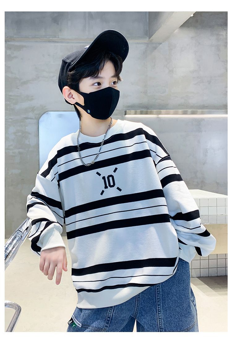 남아용 스웨트셔츠 봄가을 2025 신상 아동 봄옷 트렌디 브랜드 스트라이프 티셔츠 중대형 아동용 멋있고 패셔너블스토어 가기