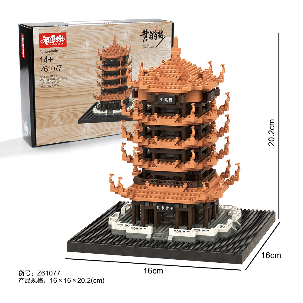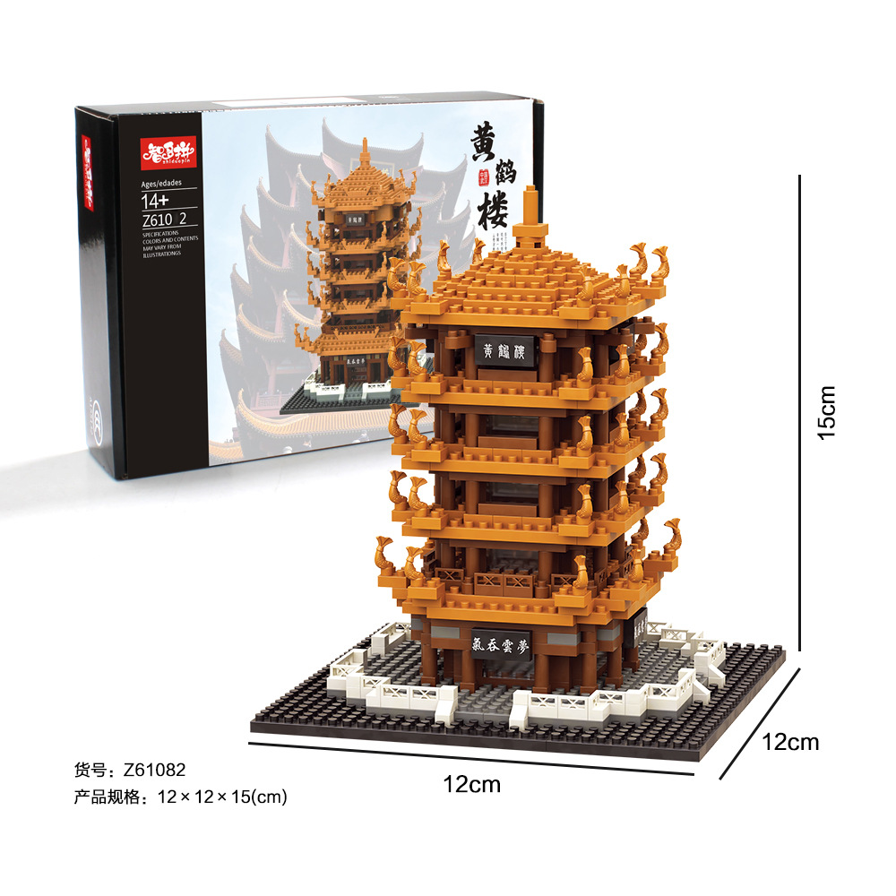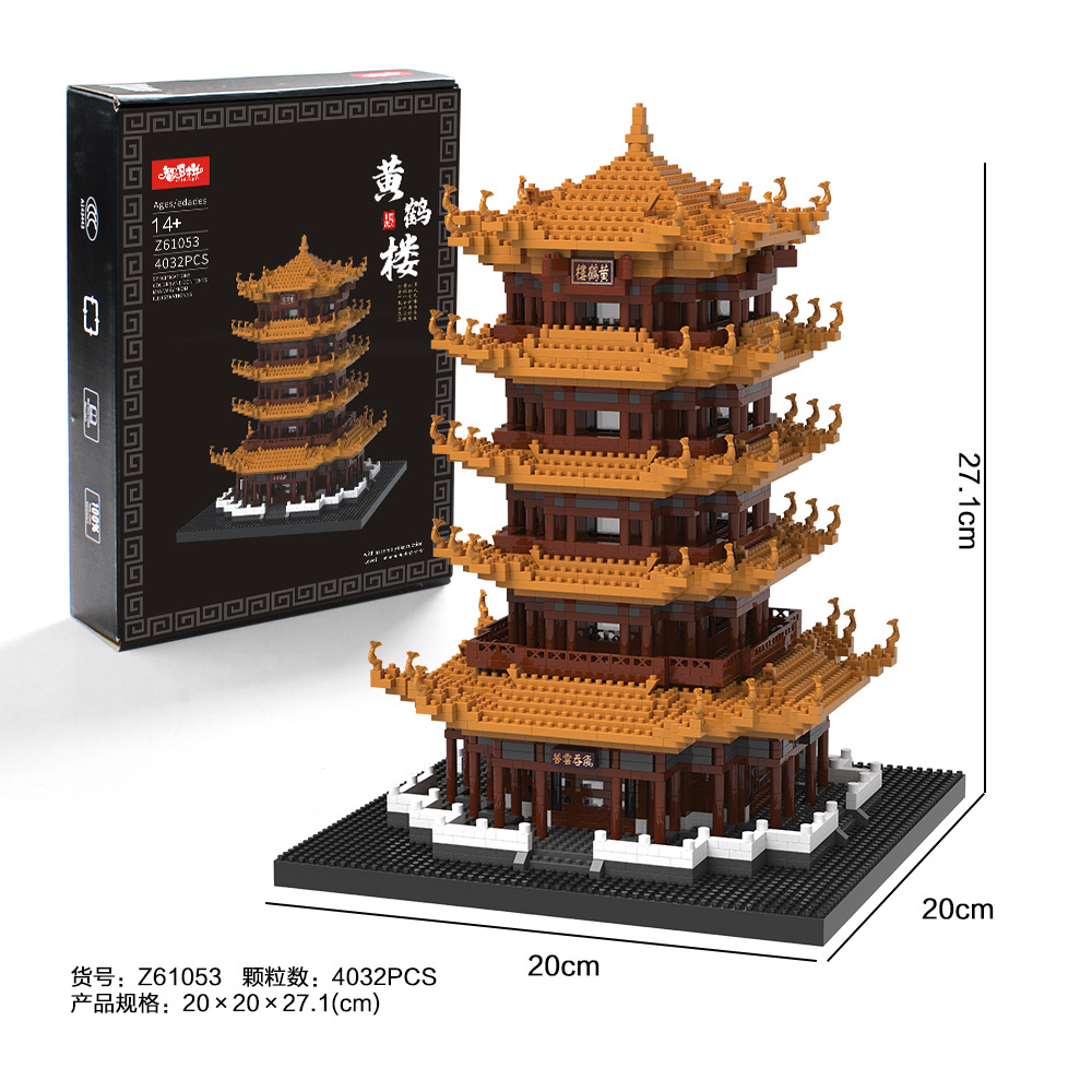 Zhiduo Spelling 레고 퍼즐 빌딩 블록과 호환되는 마이크로 입자 장난감 복고풍 노란색 크레인 타워 시리즈 접합 빌딩 블록 설정 행사