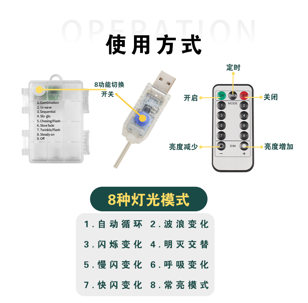 • 방수 8 기능 배터리 상자 원격 제어-5.9 미터 50 조명