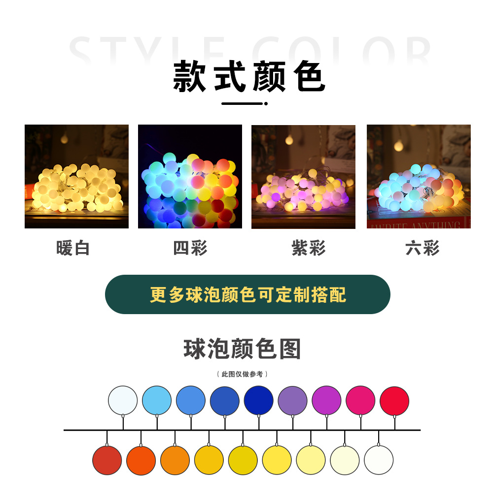 크로스보더 LED 오리지널 새로운 컬러 매트 소형 원형 볼 램프 크리스마스 발렌타인데이 장식 조명 야외 방수 조명 스트링스토어 가기
