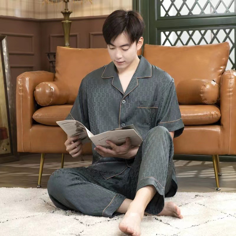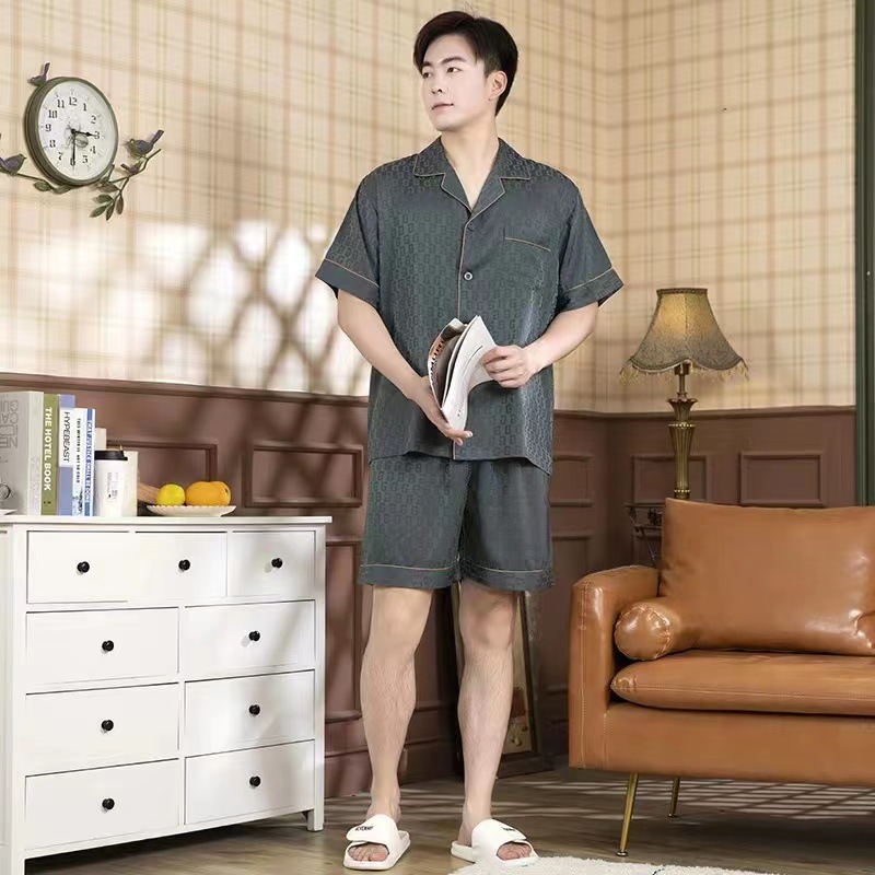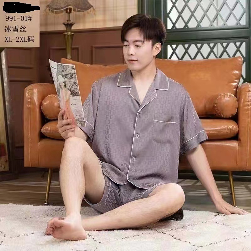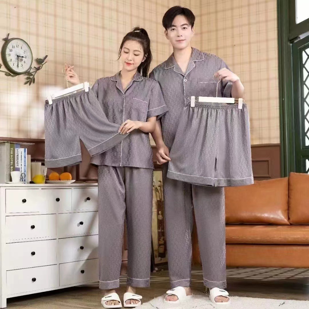 여름 커플 잠옷 아이스 실크 3 종 세트 얇은 남자의 고급 자카드 플러스 사이즈 새로운 항균 가정 의류
