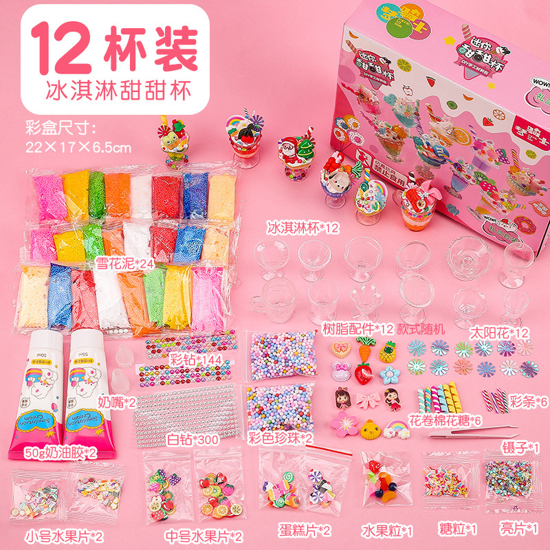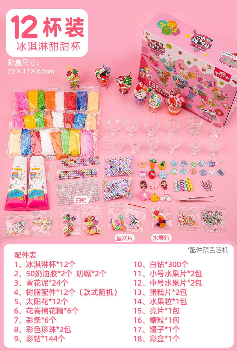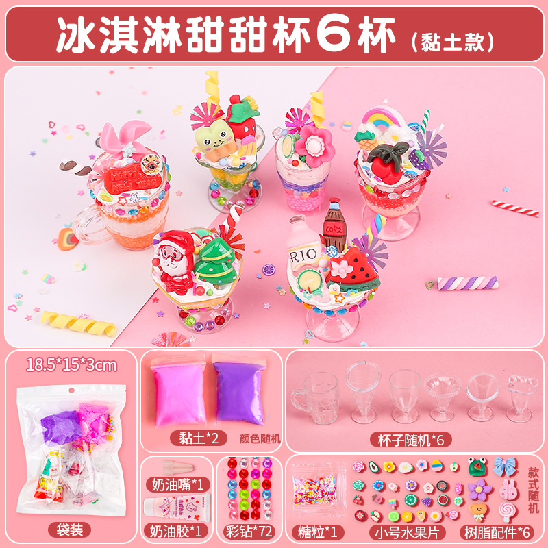 국경을 넘는 어린이 수제 DIY 크림 접착제 장난감 소녀 아이스크림 달콤한 컵 만들기 재료 패키지 창의적인 케이크