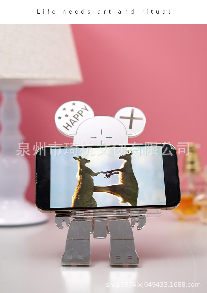 만화 곰 토끼 데스크탑 메이크업 거울 무선 충전 다기능 데스크탑 드레싱 거울 게으른 휴대 전화 홀더