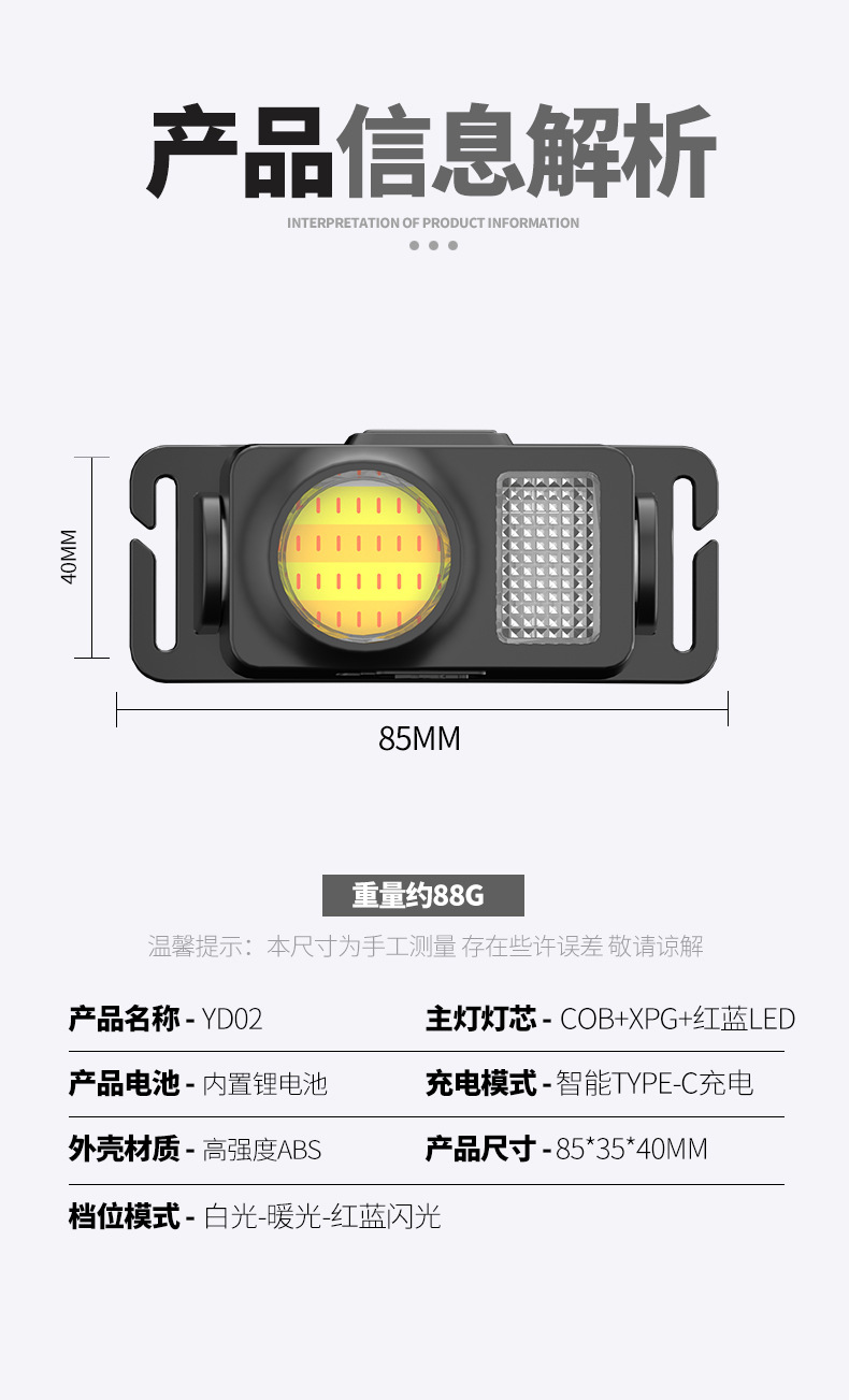 • Y03 블랙 더블 라이트 헤드램프 (헤드밴드 + 충전 라인)