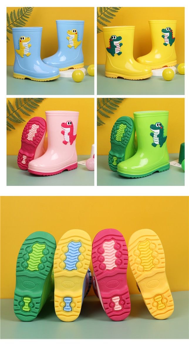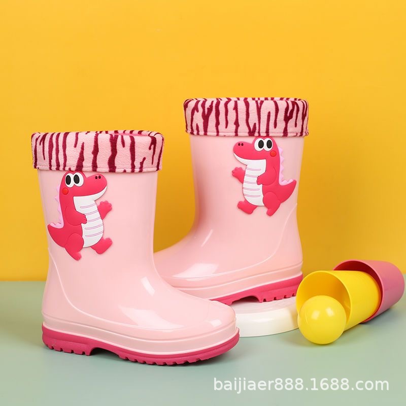 도매 어린이 장화 남녀 코튼 벨벳 장화 공룡 방수 신발 어린이 중 큰 어린이 물 신발 초등학교 학생 워터 부츠