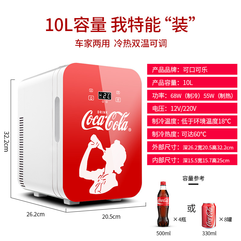 코카콜라 자동차 가정용 이중 사용 10 리터 12 리터 소형 냉장 보온 기숙사 냉난방 박스 싱글 도어 자동차 냉장고