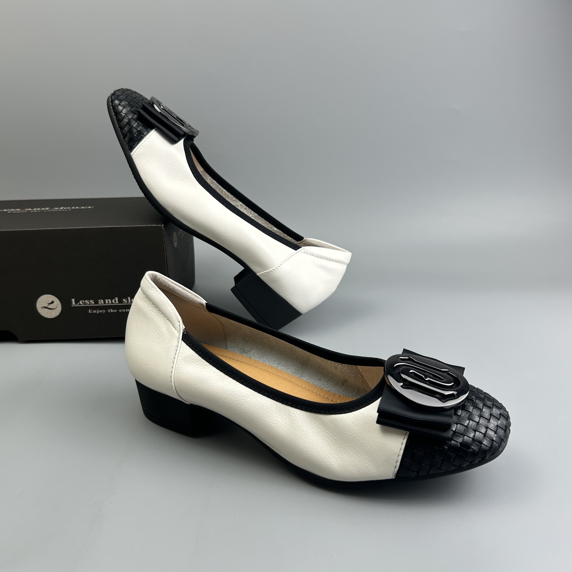 짠 라운드 토 로우 컷 여성용 싱글 레이어 신발 로우 힐 소가죽 여성 신발 작업복 여성용 가죽 신발 3196스토어 가기