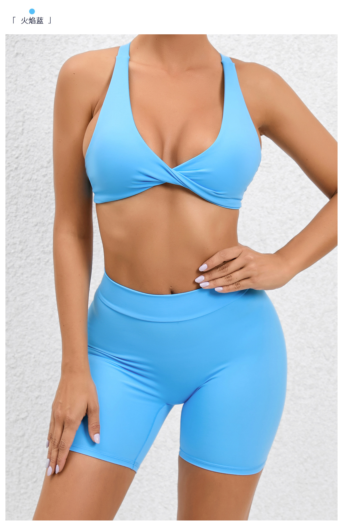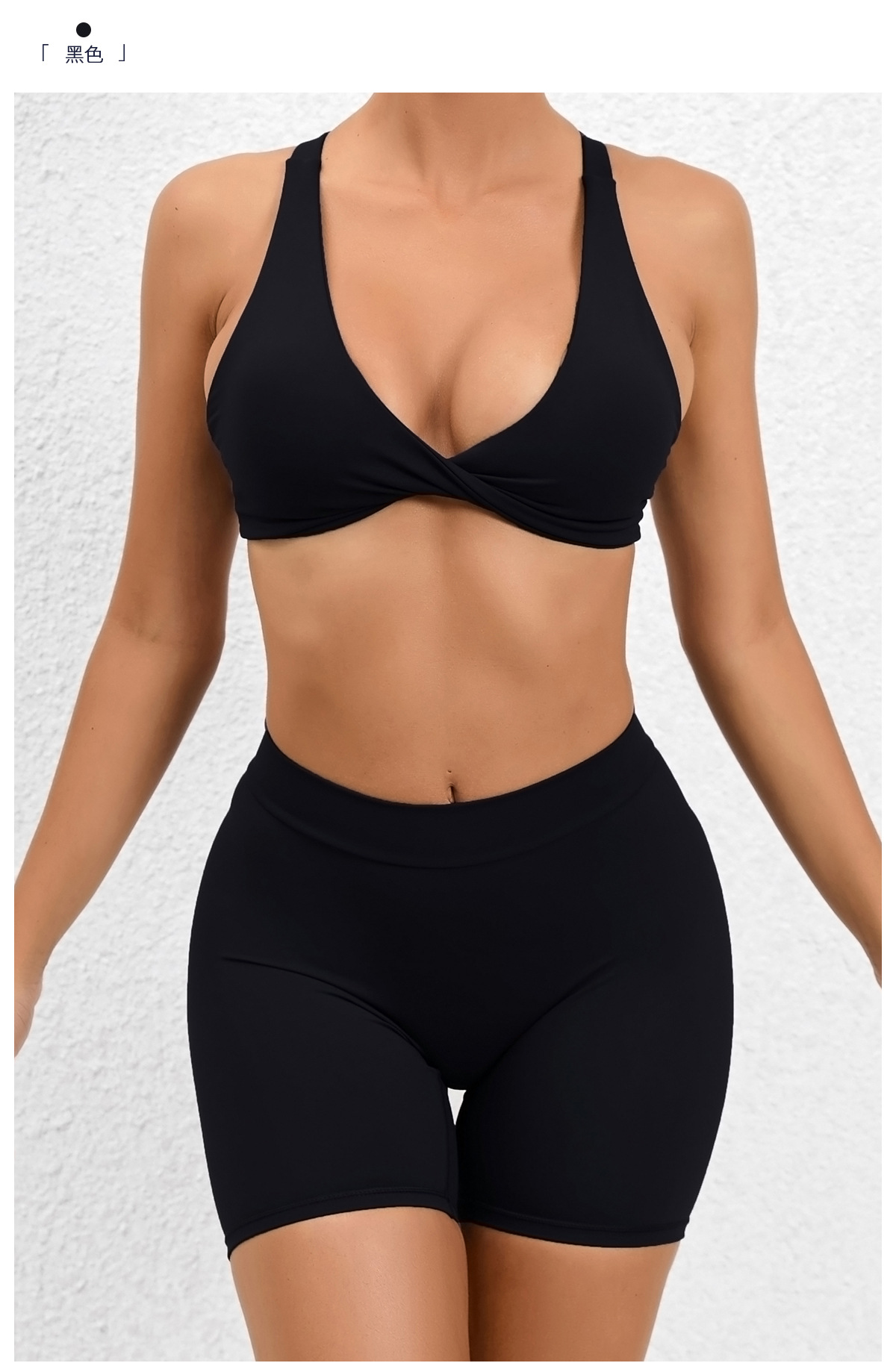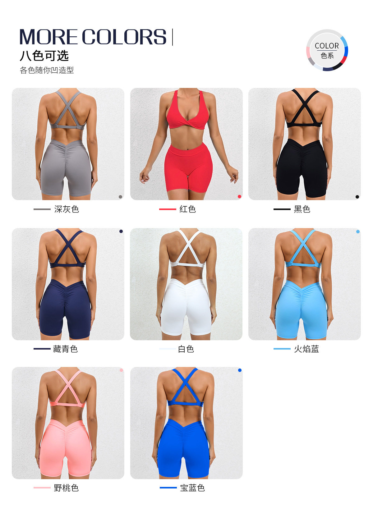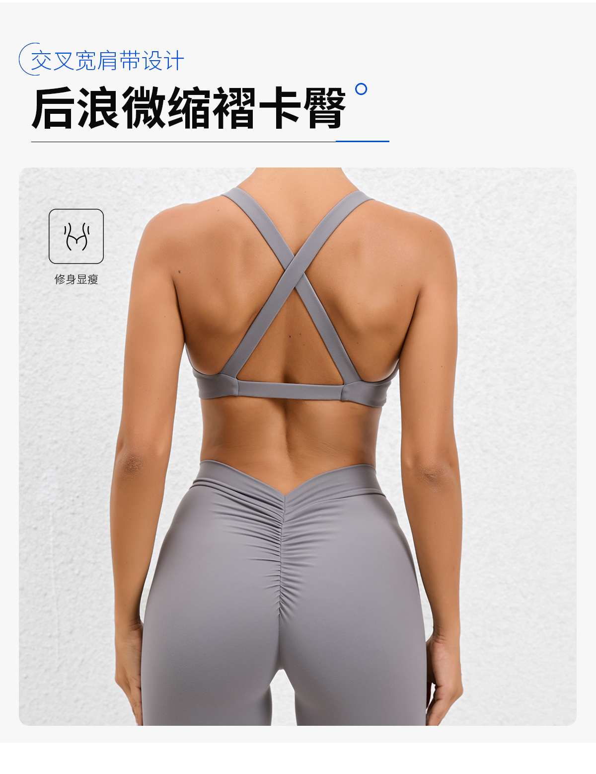 유럽과 미국의 요가 의류 세트 크로스 백 섹시 한 야외 달리기 알몸 피트니스 의류 타이트한 빠른 건조 스포츠 세트