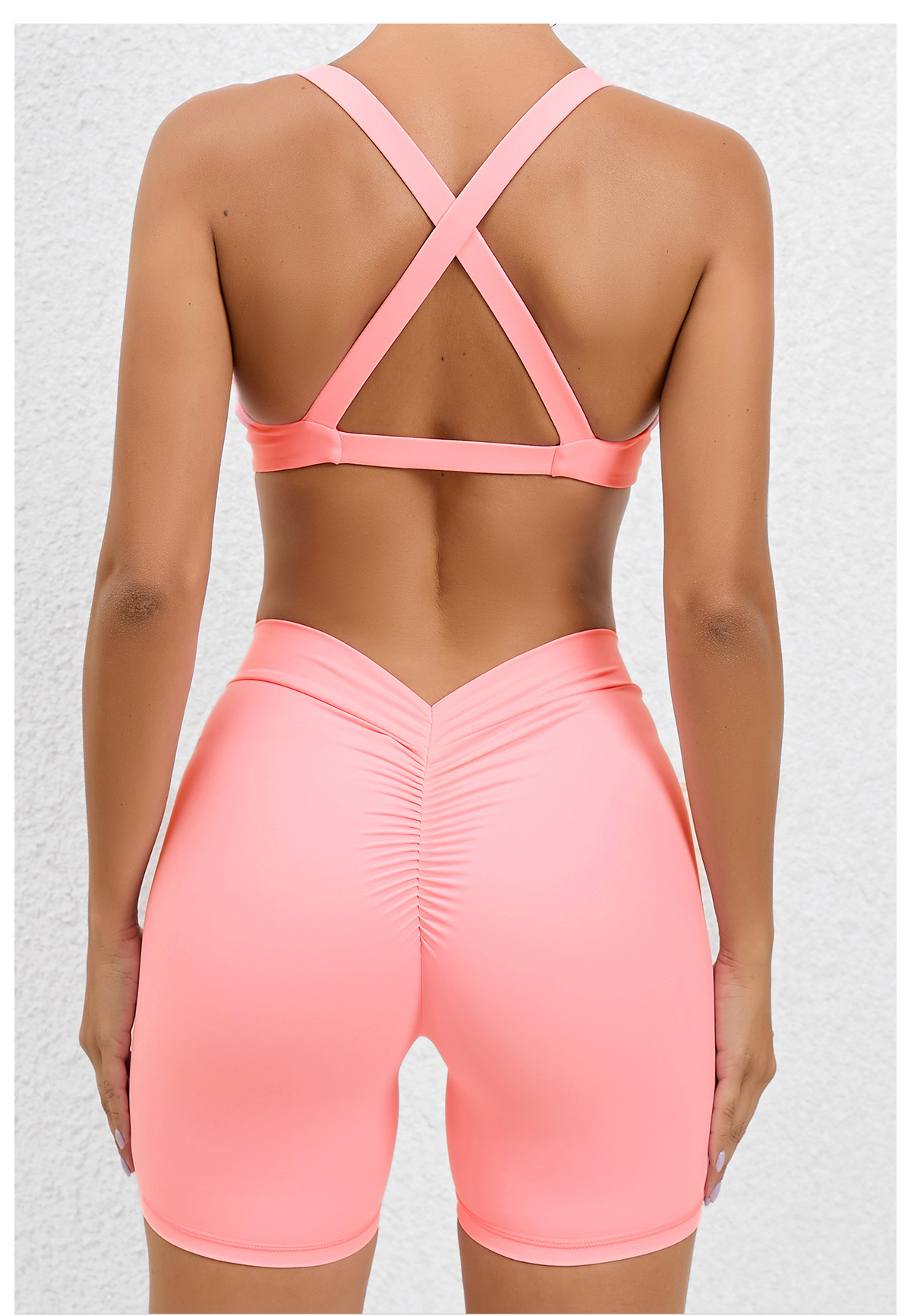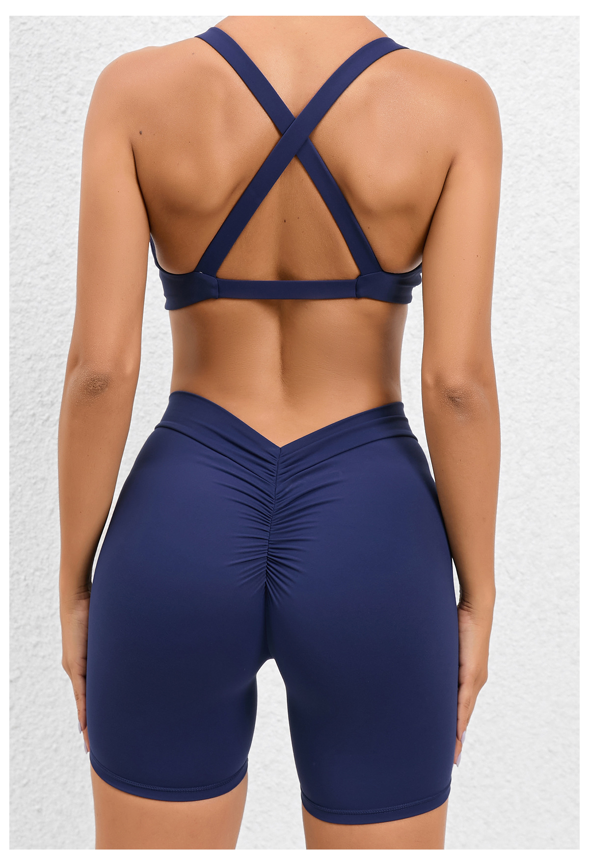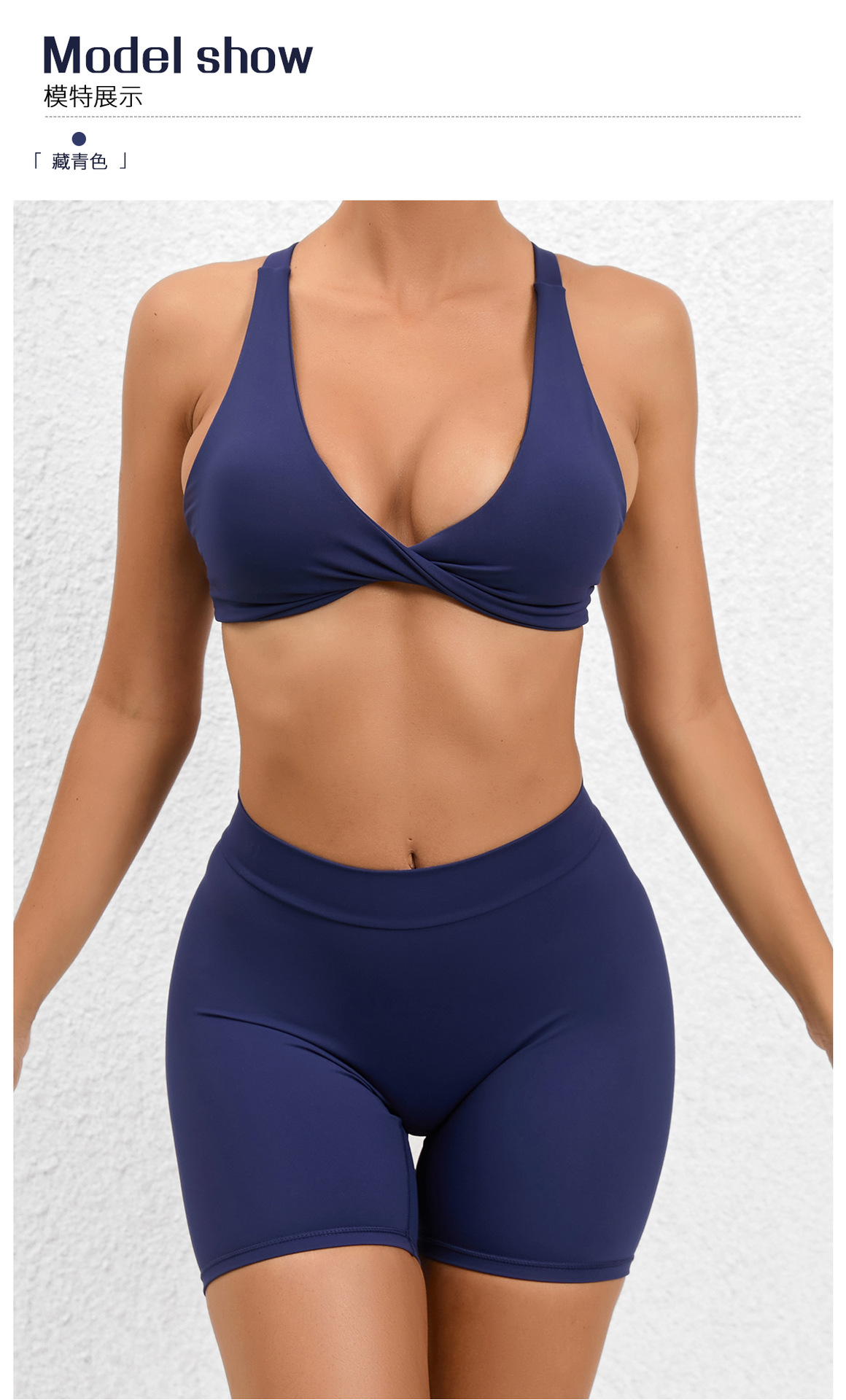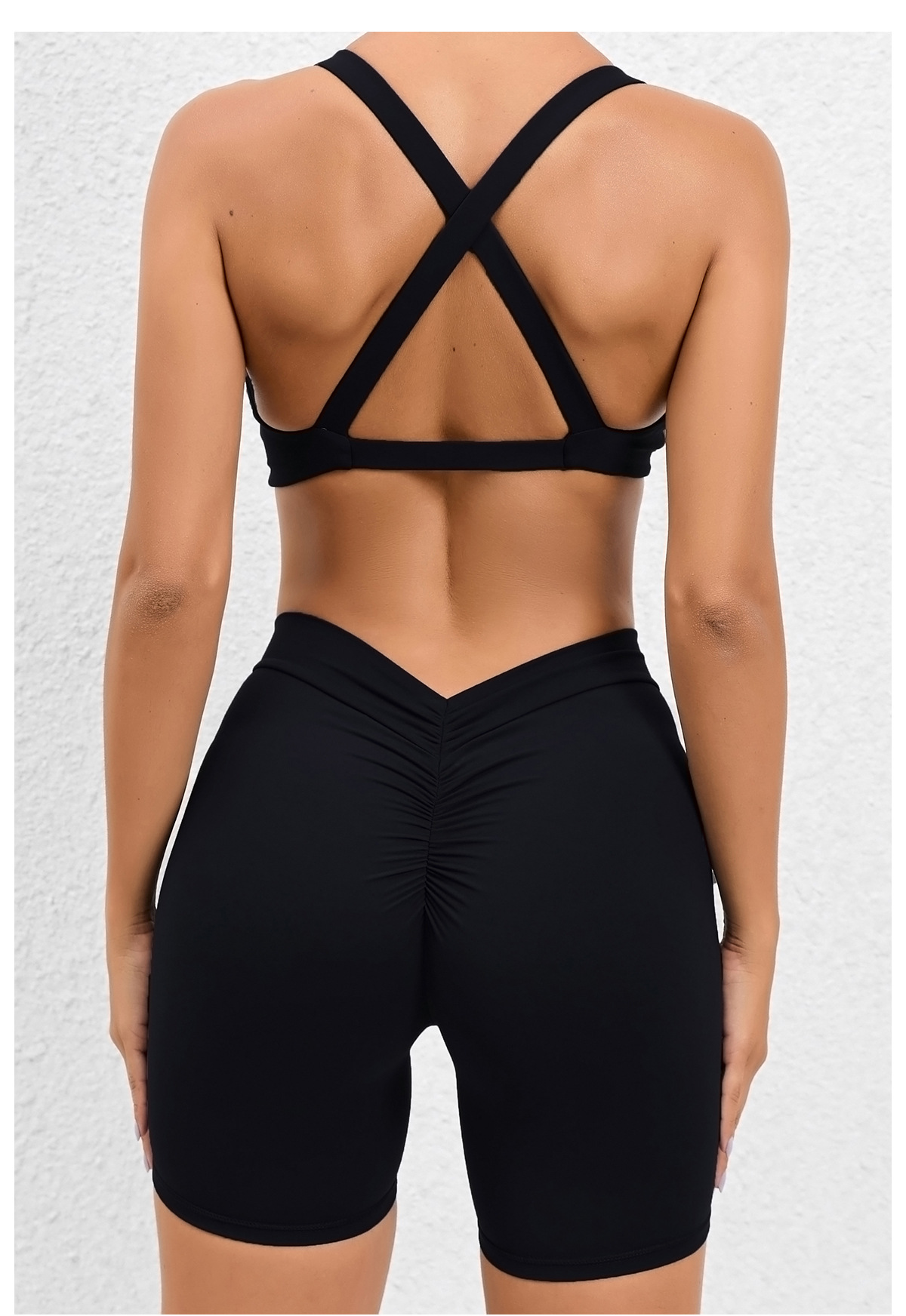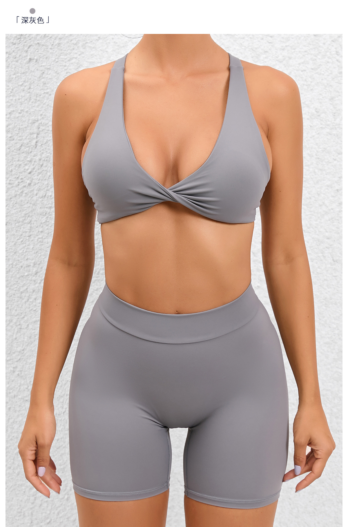 유럽과 미국의 요가 의류 세트 크로스 백 섹시 한 야외 달리기 알몸 피트니스 의류 타이트한 빠른 건조 스포츠 세트