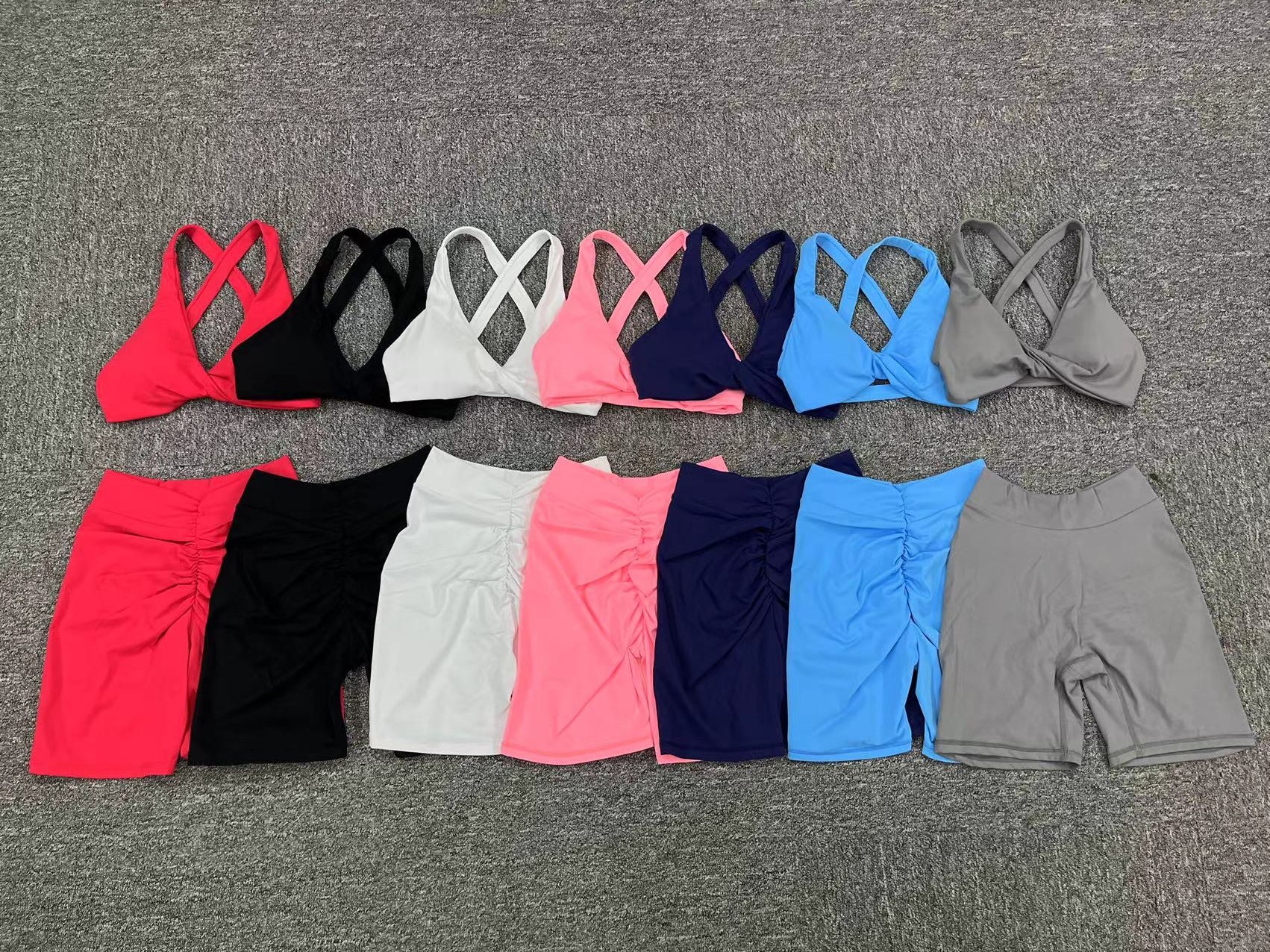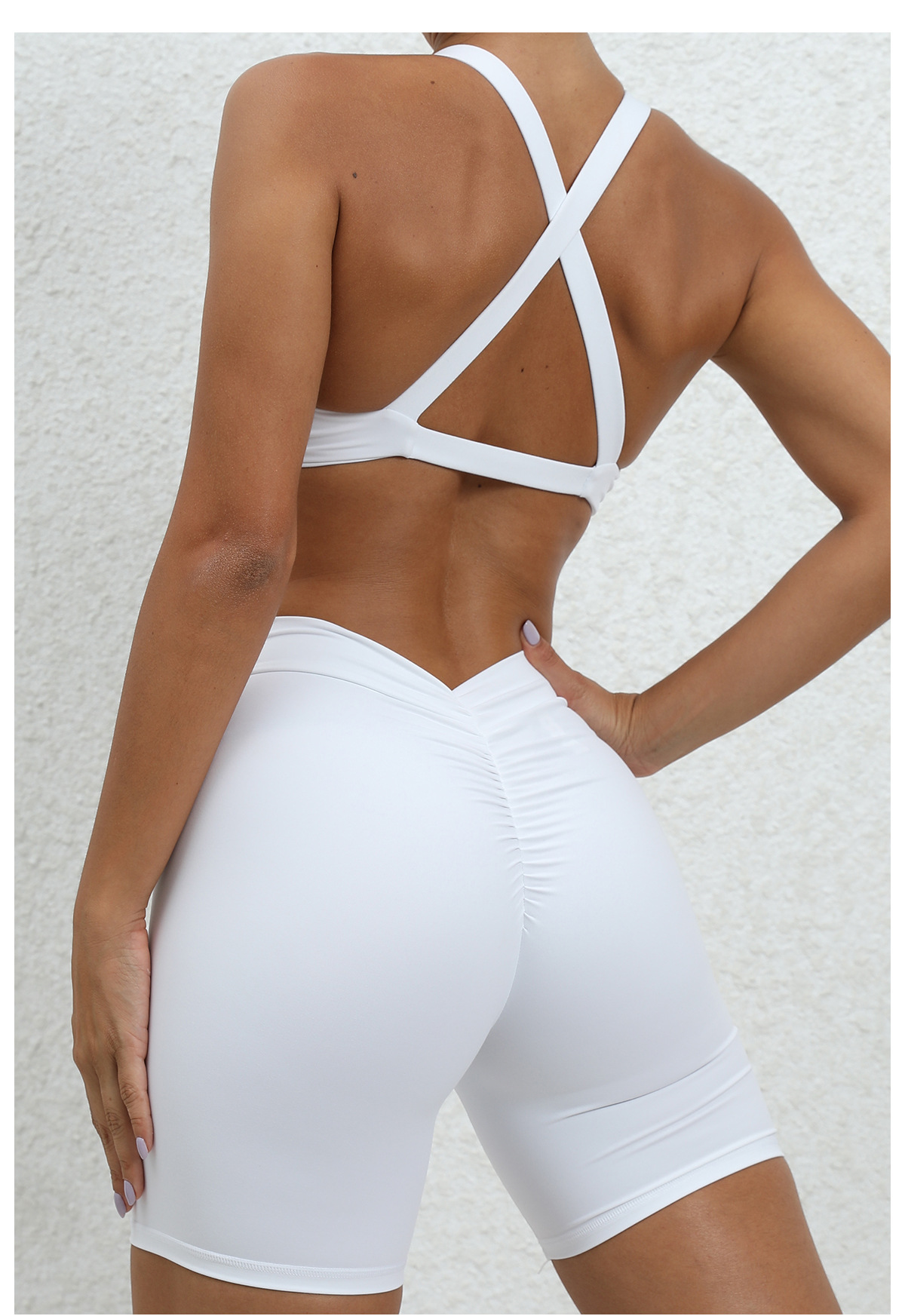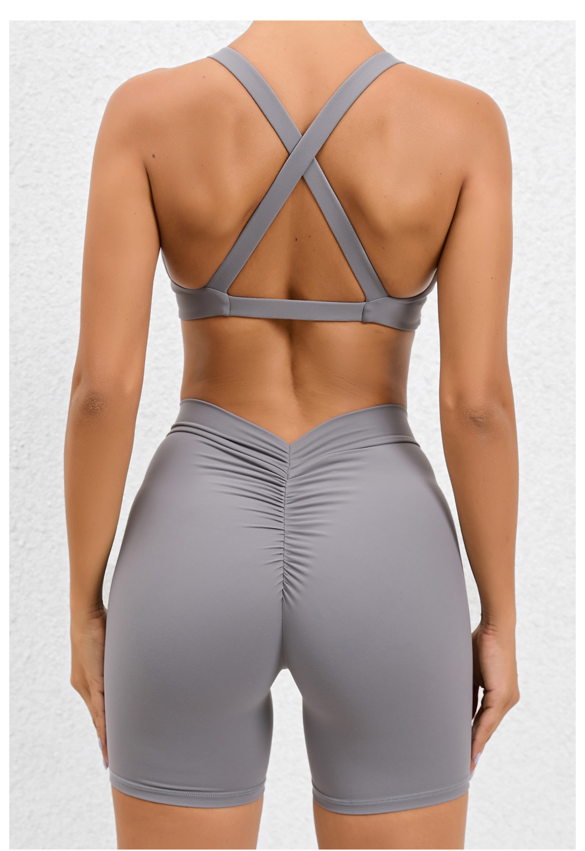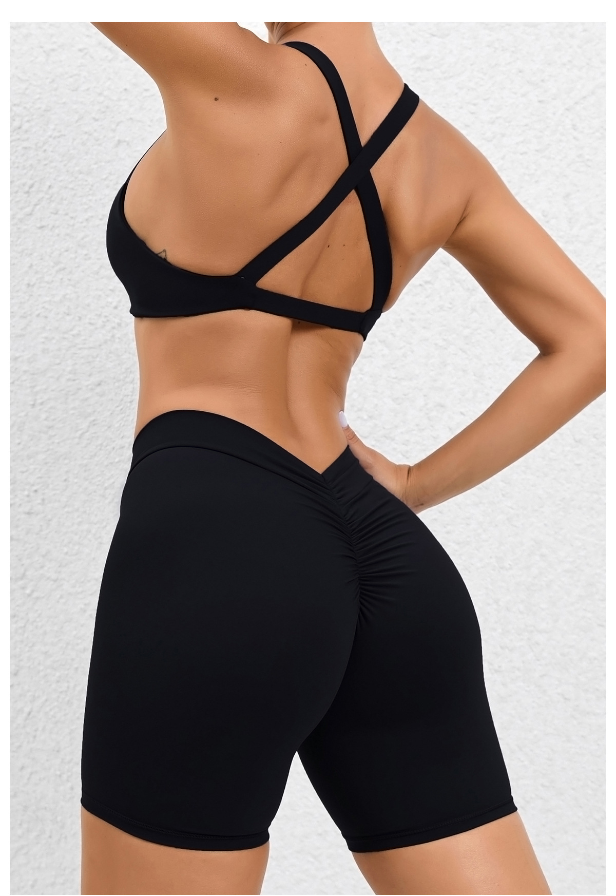 유럽과 미국의 요가 의류 세트 크로스 백 섹시 한 야외 달리기 알몸 피트니스 의류 타이트한 빠른 건조 스포츠 세트