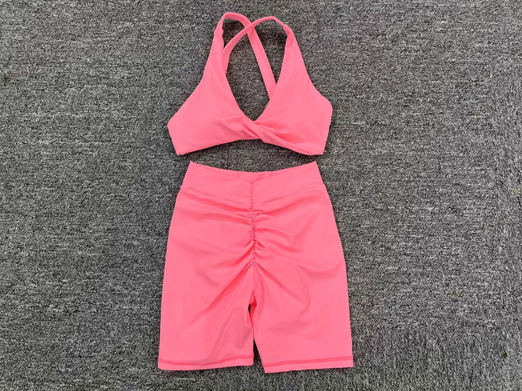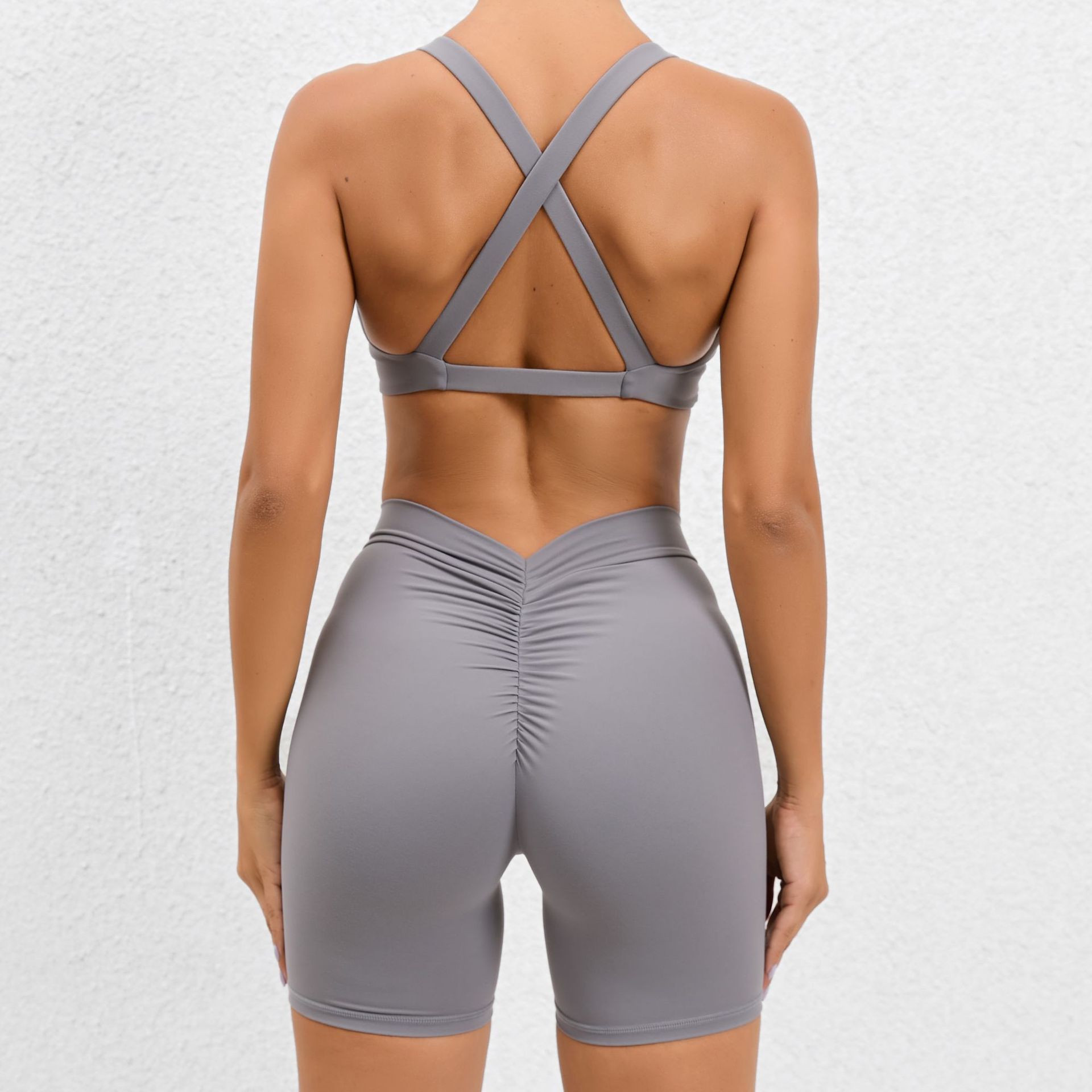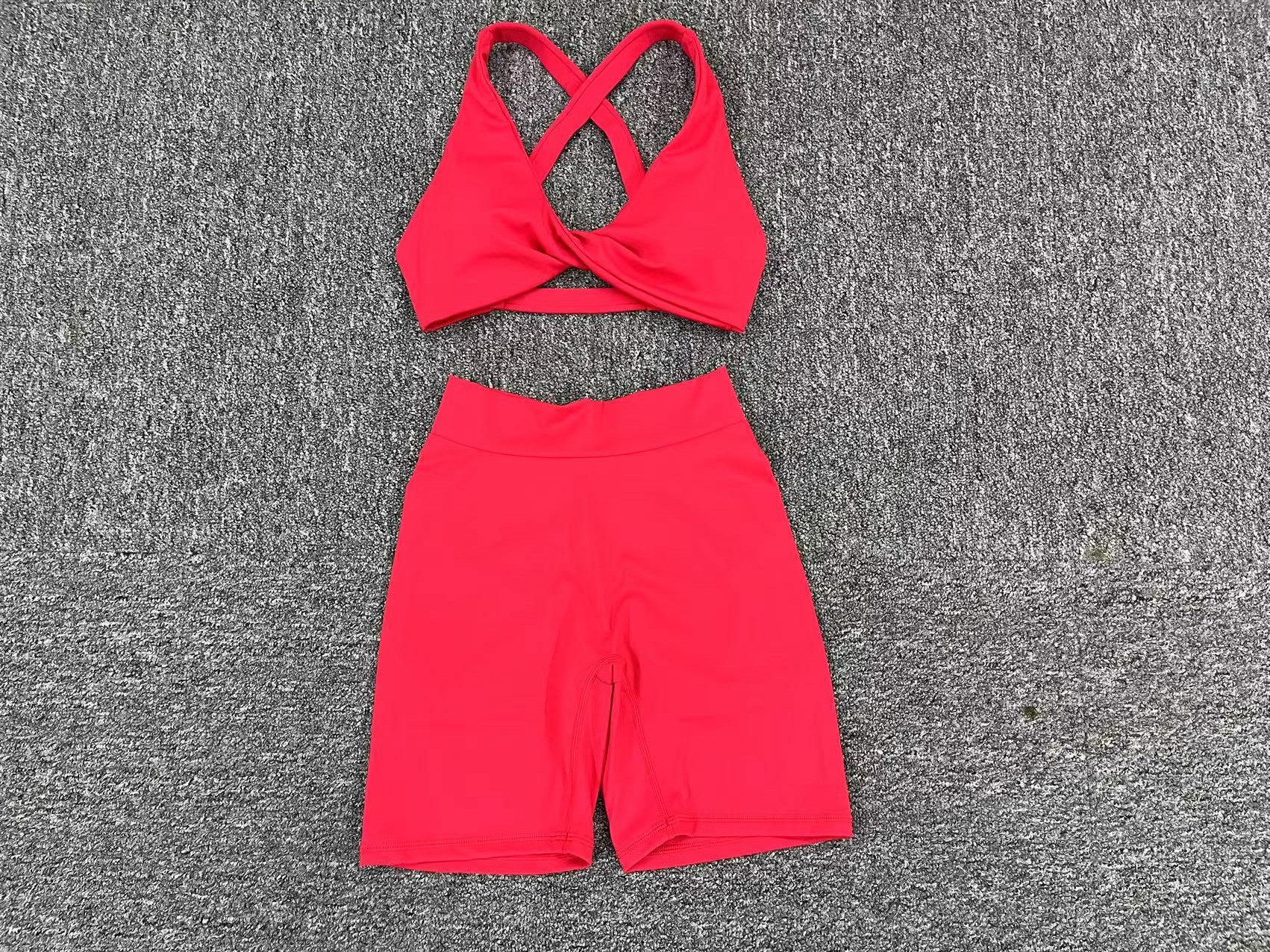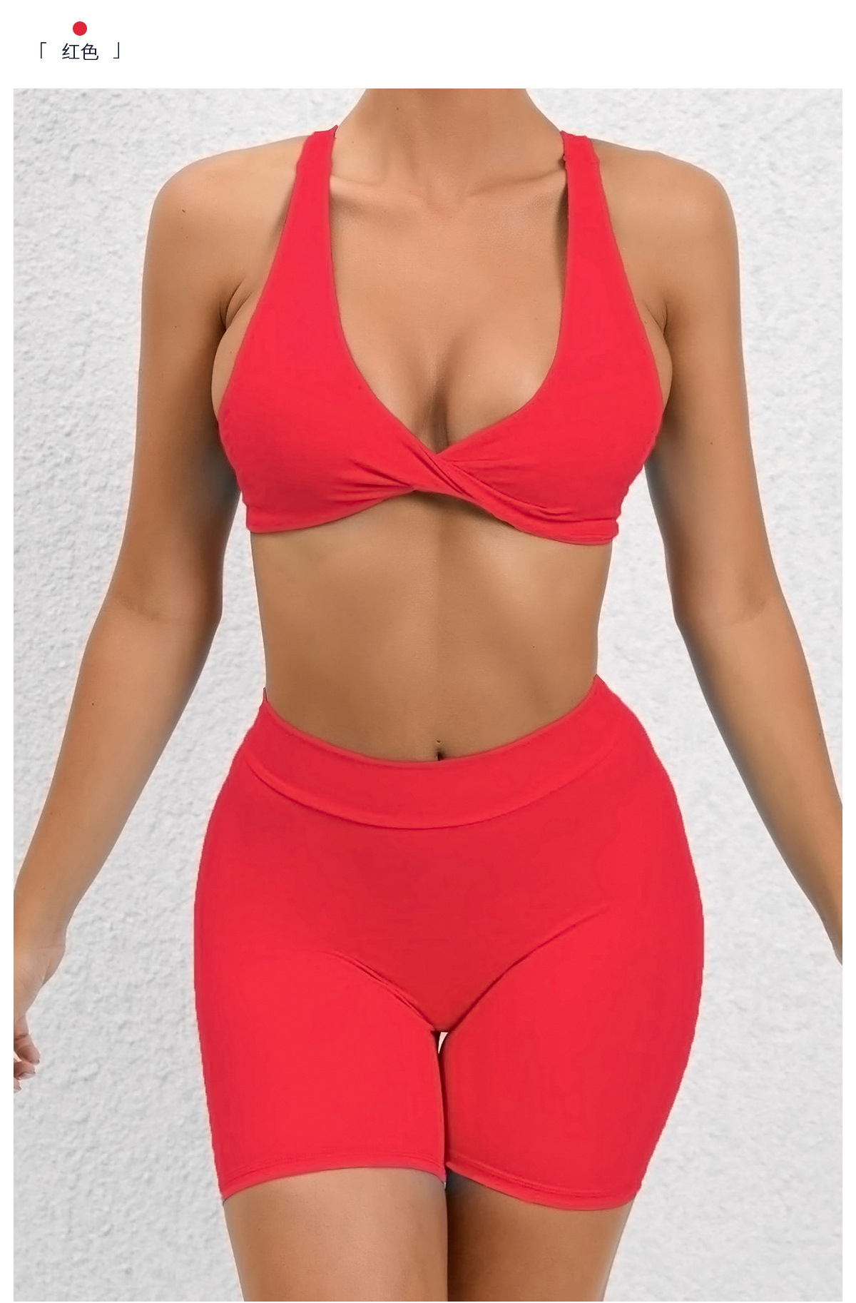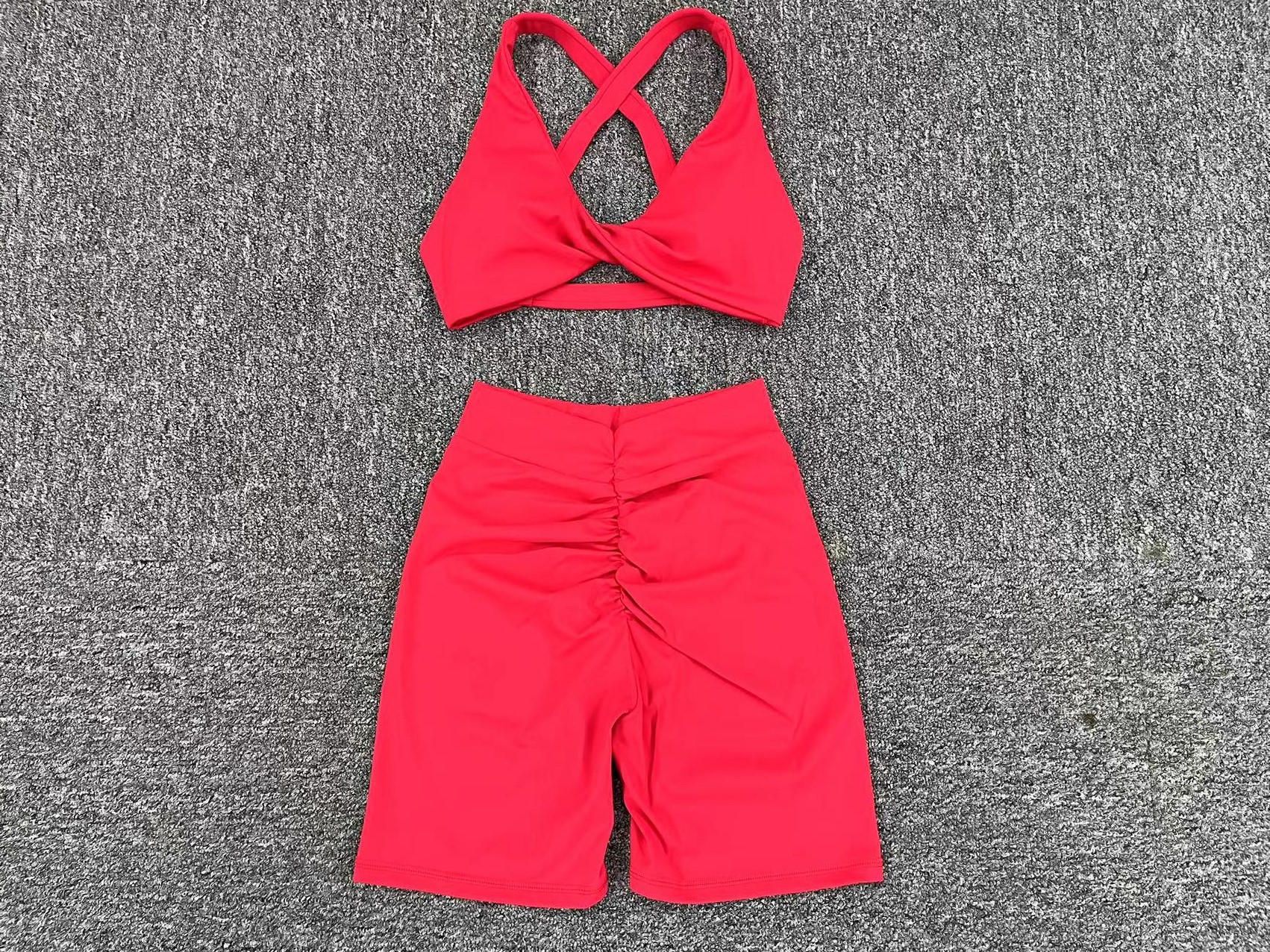 유럽과 미국의 요가 의류 세트 크로스 백 섹시 한 야외 달리기 알몸 피트니스 의류 타이트한 빠른 건조 스포츠 세트